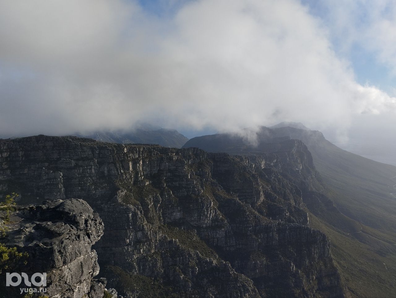 Вид со Столовой горы на Кейптаун и омывающий его бескрайний Атлантический океан открывается просто невероятный. Ощущение, что ты паришь над землей и можешь потрогать облака, которые весь день мешали нам забраться на вершину.