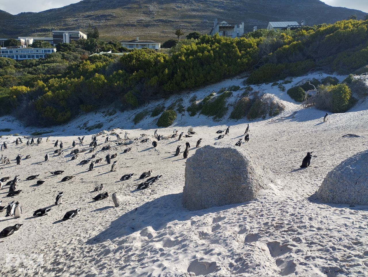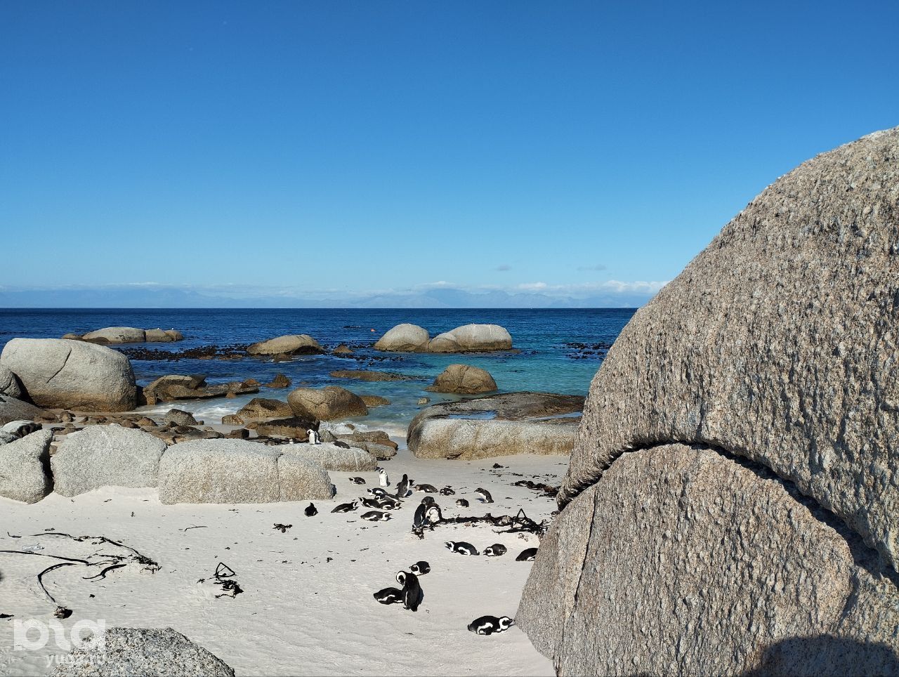 Чтобы увидеть пингвинов, наша группа отправилась на пляж Боулдерс, расположенный в Саймонстаун на восточной стороне Кейптауна. Эти милые создания обосновались здесь в 1980 году и с тех пор стали настоящей достопримечательностью региона.