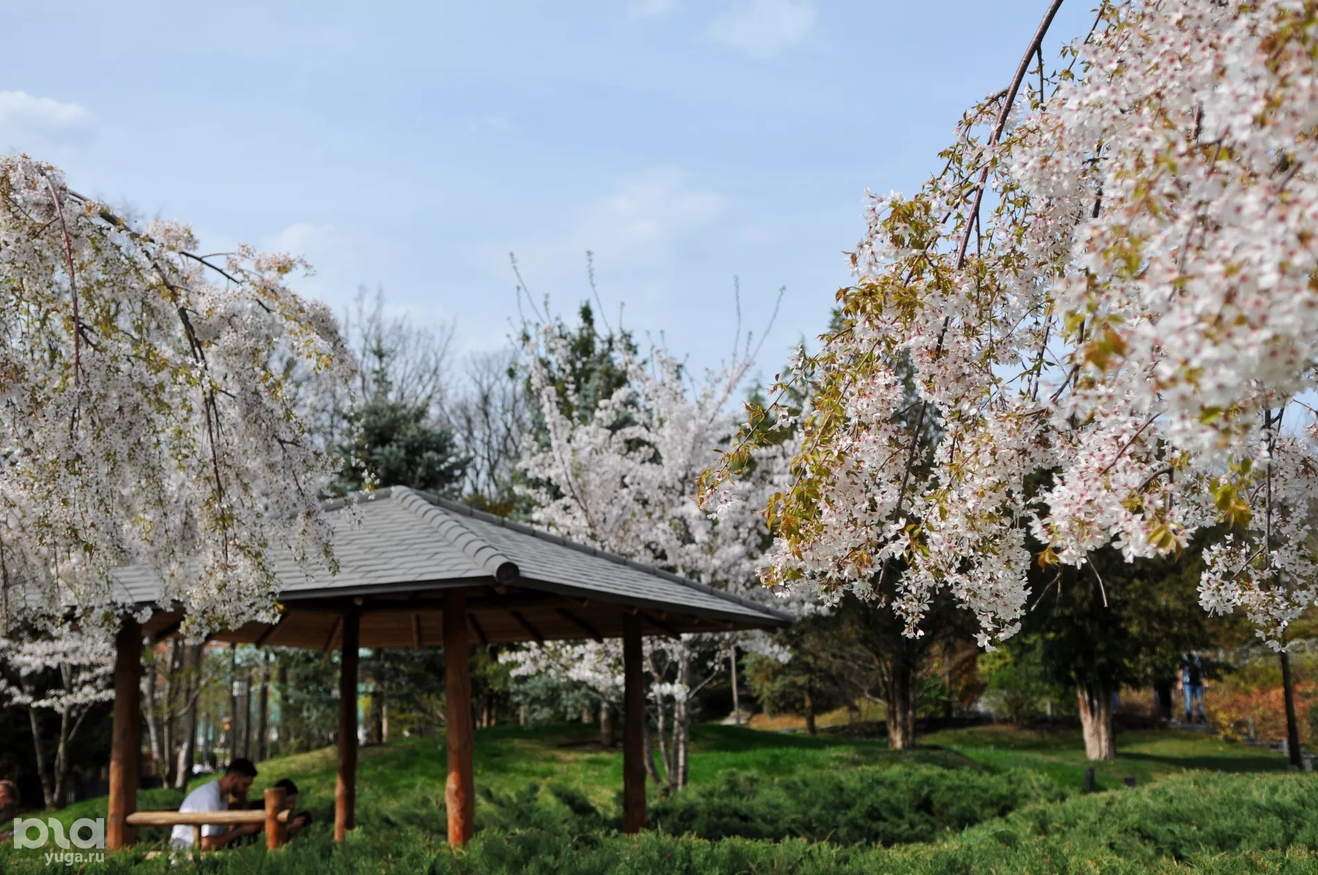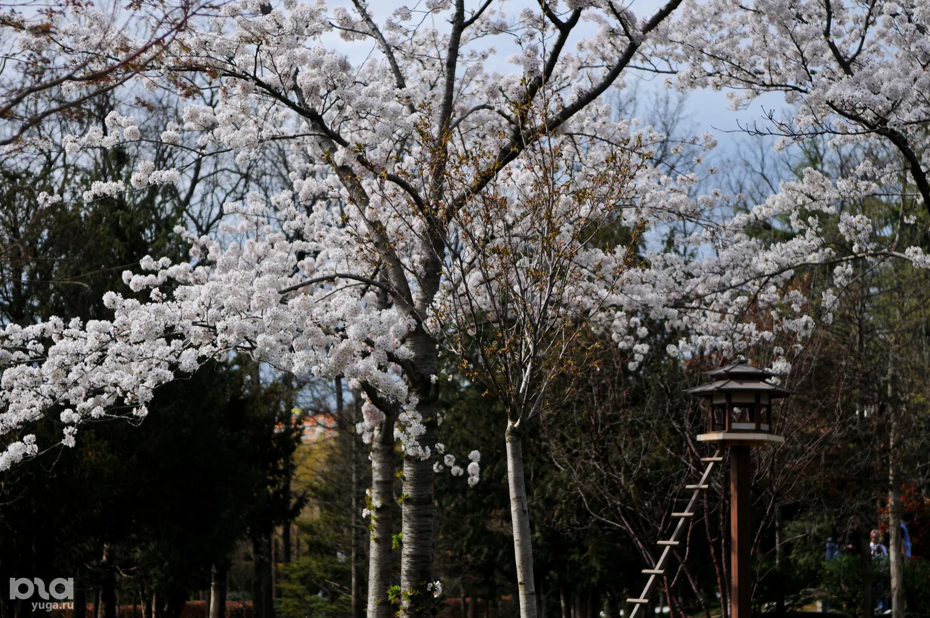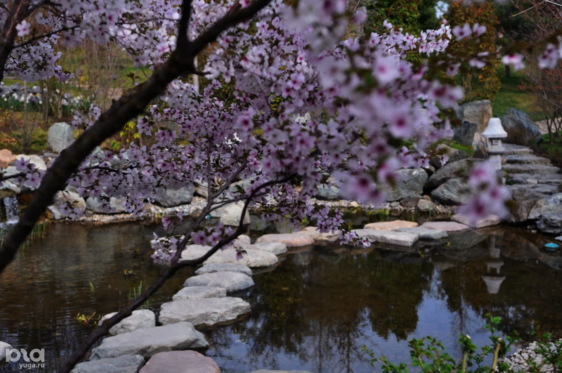 На стыке двух первых весенних месяцев сразу несколько видов деревьев в Японском саду парка «Краснодар» достигают пика цветения. Давать конкретные координаты в этом месте — дело неблагодарное: искать свои любимые уголки сада и даже отдельные деревья — вот что сделает прогулку по-настоящему незабываемой. Но одну локацию все же пропускать не стоит.