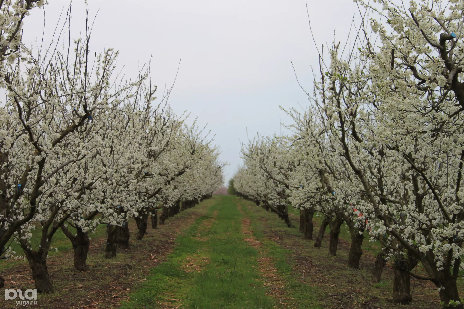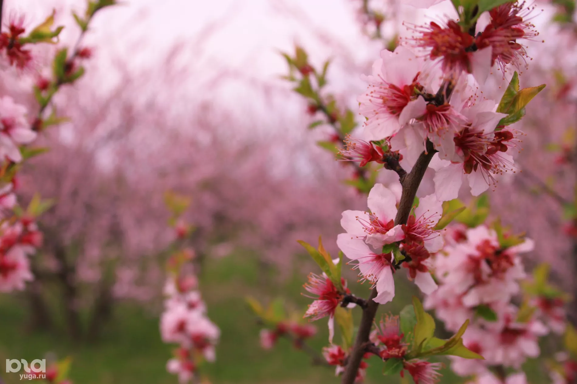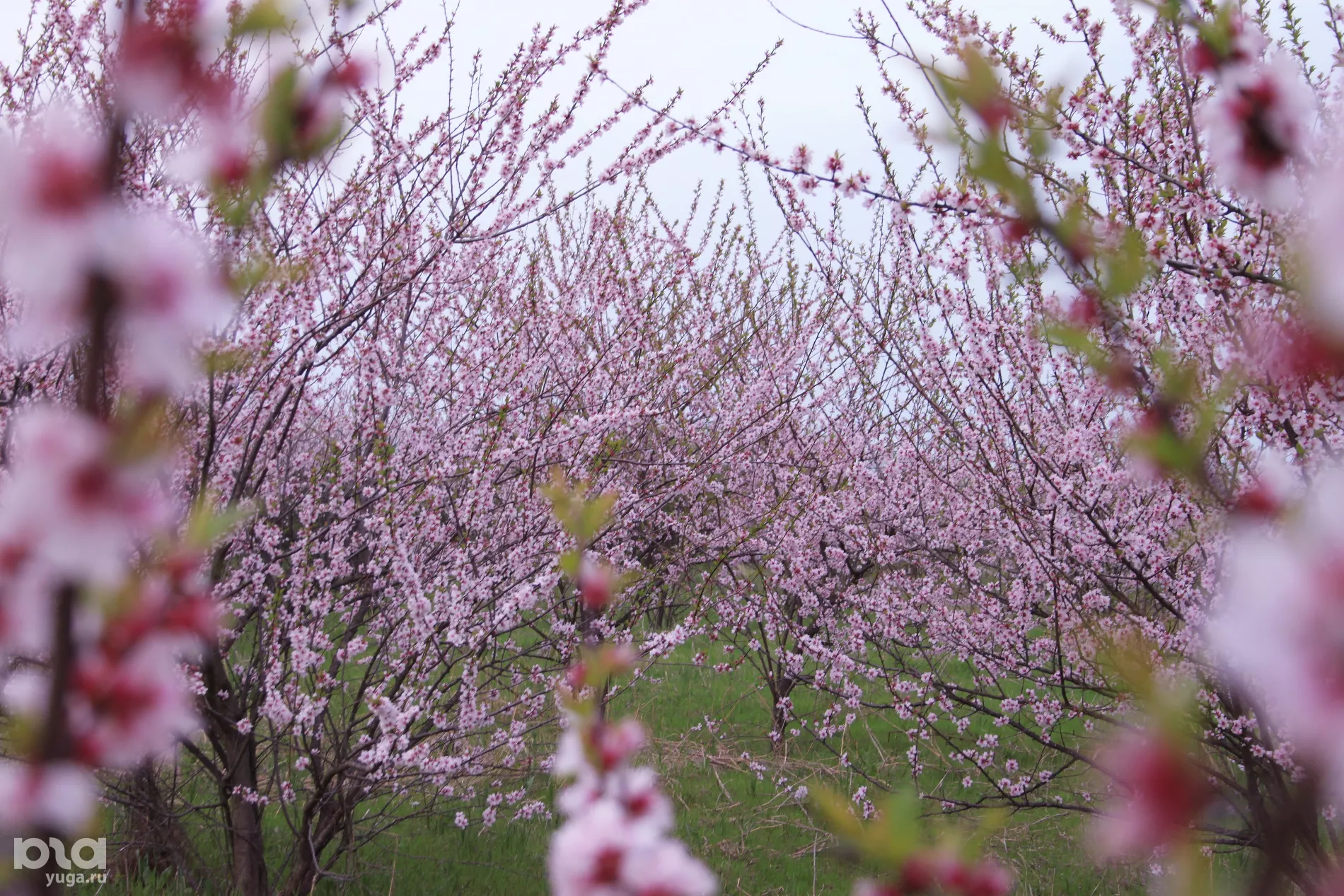 Пышное цветение на огромной территории идеально подойдет для фотосессий: здесь каждый сможет найти свой свободный ряд. Сады утопают в белом цвету яблонь, но если прогуляться вглубь, можно набрести на розовый участок персиков.