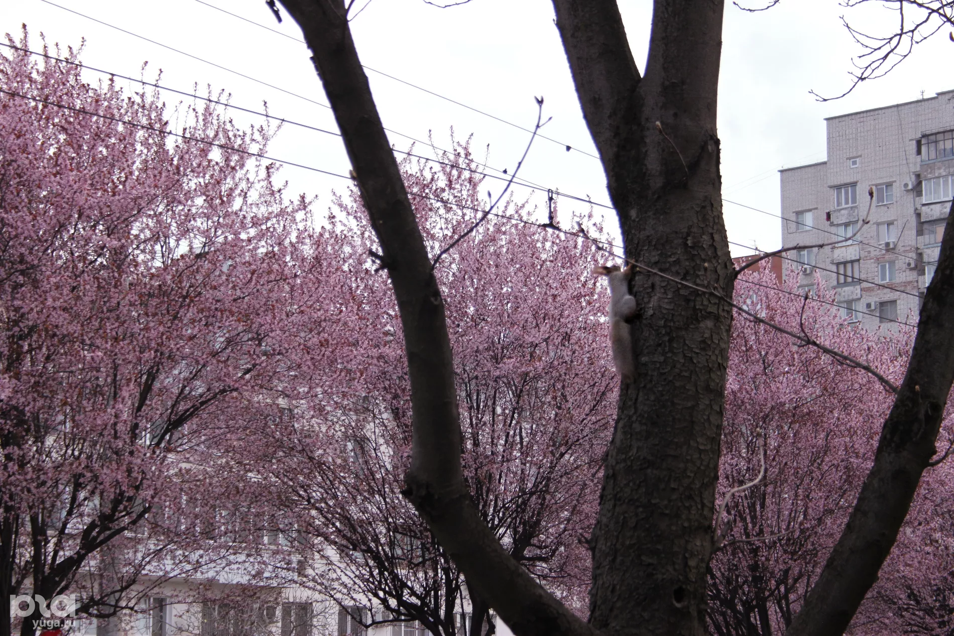 Примерно в то же время, что и на Ставропольской, сливы сорта «нигра» расцветают у смотровой площадки «Пирамида» в парке Галицкого. Ориентир — кафе «Краснодар».