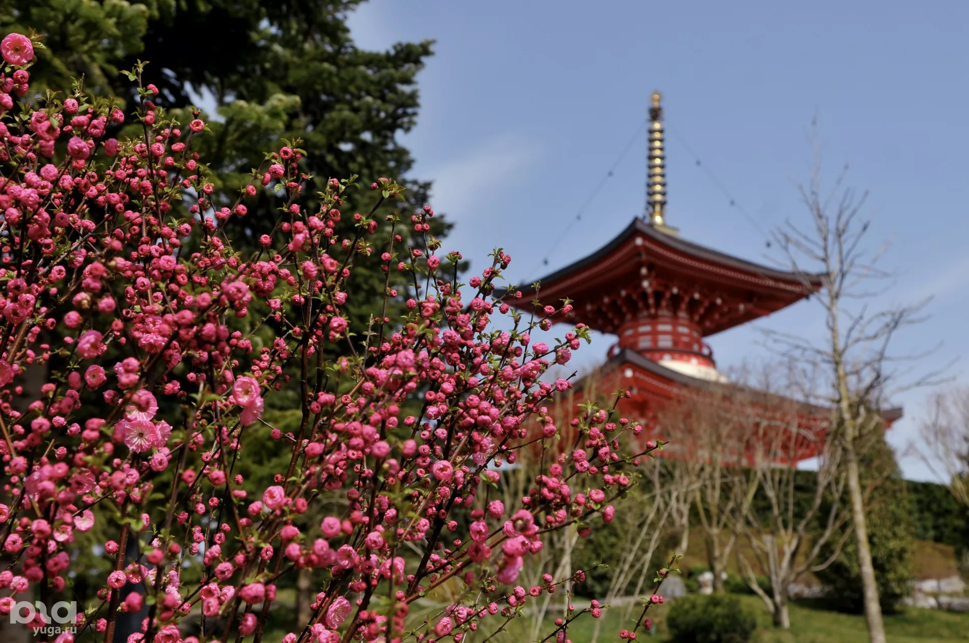 На стыке двух первых весенних месяцев роща Умэбаяси уже укрылась белым. Несмотря на пасмурно-дождливую погоду здесь обильно цветут сливы, вишни, абрикос, миндаль и черешни. Одни деревья уже готовы устроить «сакура фубуки» — метель из лепестков, а другие лишь набирают краску. На холмах за прохожими «присматривают» маленькие гранитные фигуры Дзидзо — по японским поверьям, они оберегают детей и путников.