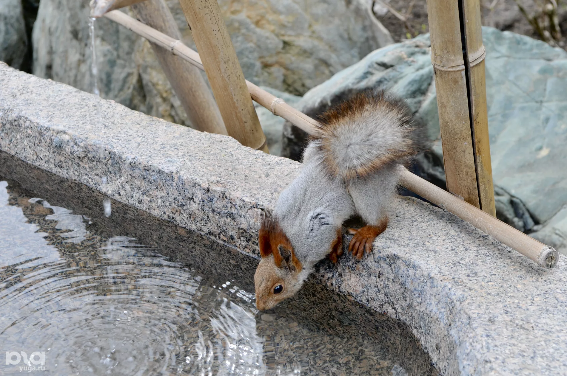 Белкам, которые переехали в парк из новосибирского зоопарка два года назад, некогда стесняться посетителей. Под восторженные взгляды они смело спускаются к каменным колодцам — цукубаям, чтобы утолить жажду.