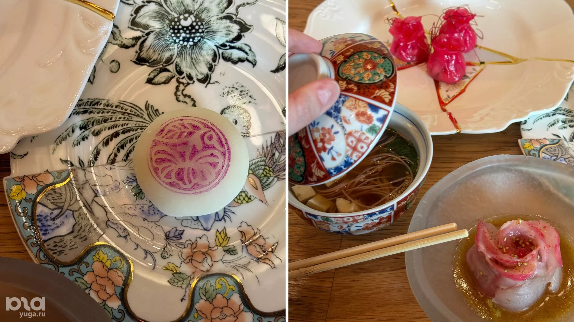 В ресторане «Рётэй» севиче из сибаса сворачивают в форме цветка, сливовый сомен готовят из лапши нежно-розового оттенка, дамплинги с окунем лепят в виде ярких бутонов, а моти с вишней украшают печатью в виде цветка. Стоимость праздничного набора — 1700 рублей.