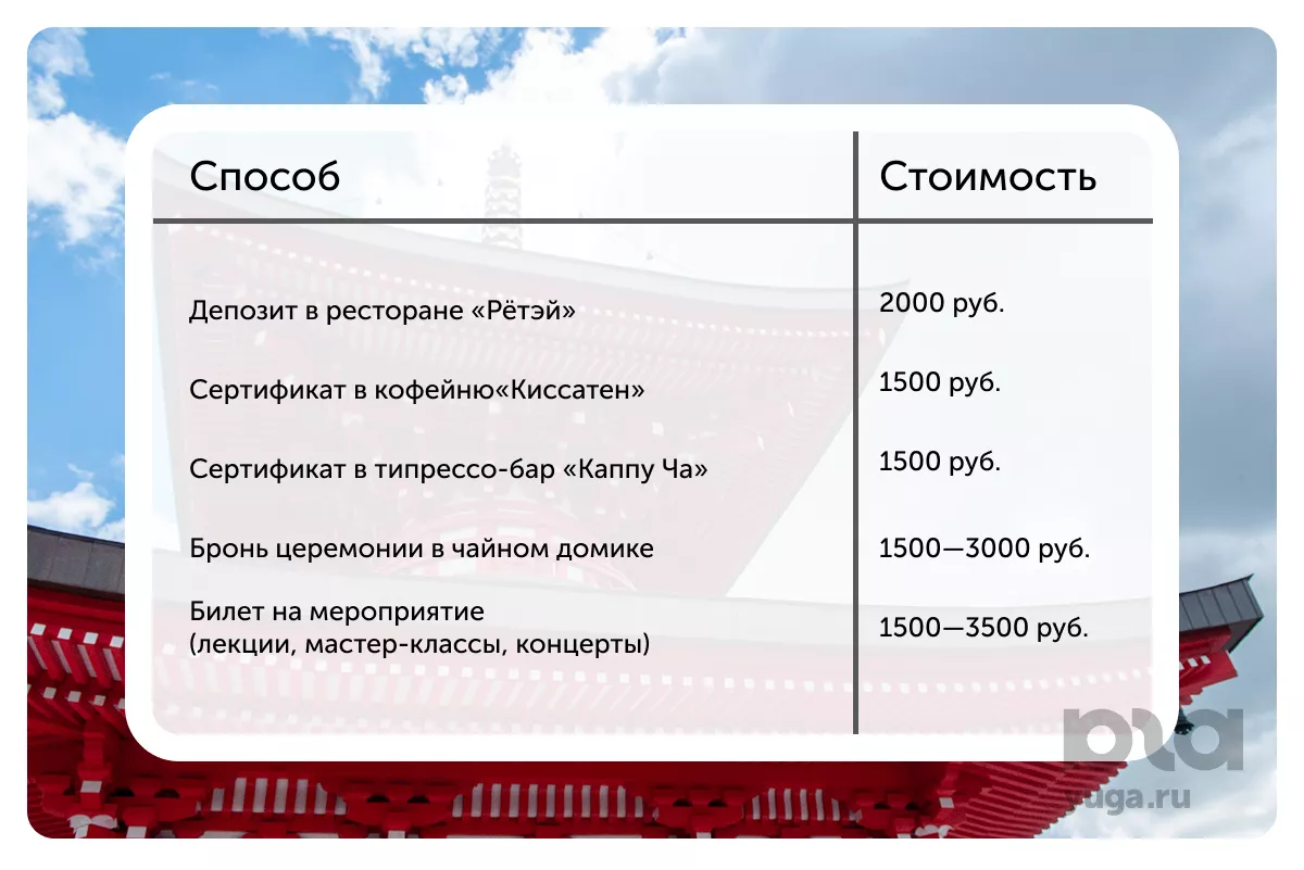 Попасть внутрь можно, выбрав и оплатив на сайте teajapan.ru одно из четырех событий:
