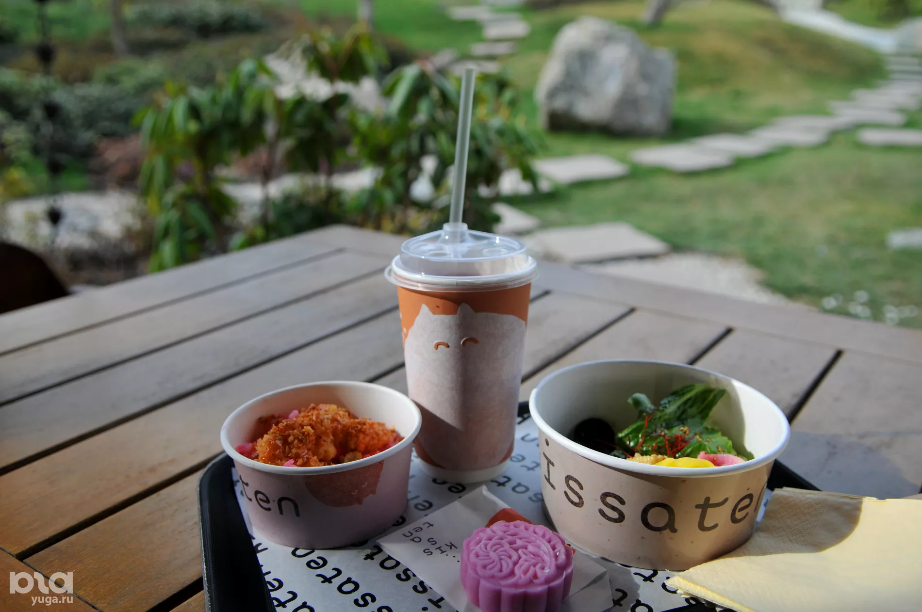 «Каппу Ча» — самый новый гастрономический объект на территории Японского сада. Заведение играет на стыке двух культур: здесь готовят чайные версии кофейной классики — от «типрессо» до «рафти», а на закуску подают румяные вафли в форме рыбок — тайяки.