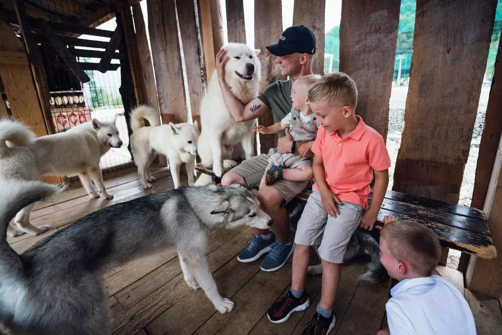 Так что при случае загляните в горную Олимпийскую деревню на отметку 1100 метров курорта «Роза Хутор». Живут здесь не только хаски, но и аляскинские маламуты. Первая порода выведена сибирскими чукчами, вторая — эскимосским племенем малемиутов. И те и другие — ездовые собаки, поэтому зимой здесь катают посетителей в санных упряжках. Но и в теплый сезон интересных занятий хватает: в сопровождении хаски и маламутов можно ходить в горы. И конечно, общаться с ними, обниматься и фотографироваться.