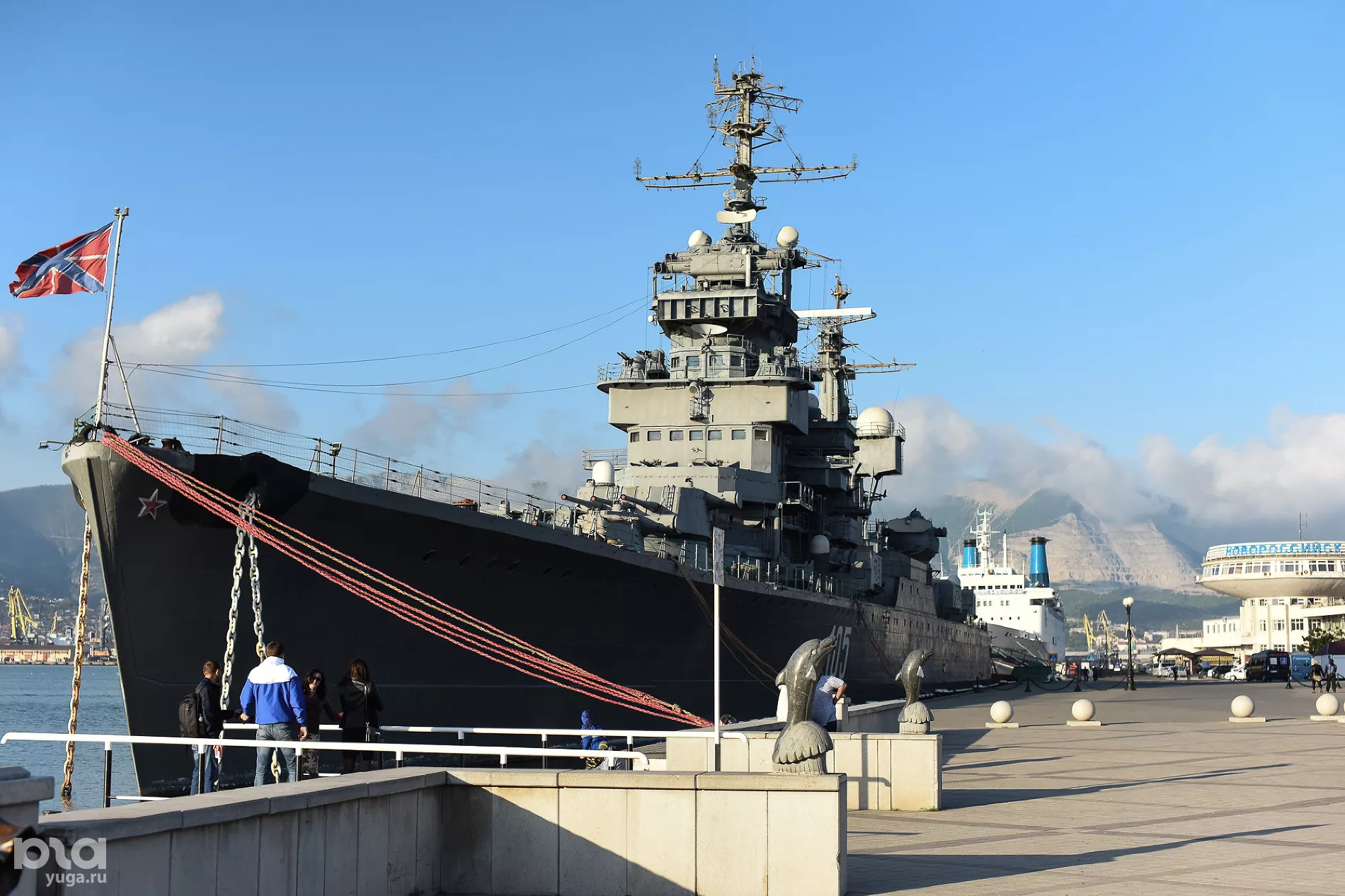 Один из главных символов города, с его изображением печатают открытки, изготавливают магниты и тарелки. Длина корабля 210 метров, ширина — 23 метра. За без малого полвека службы крейсер выполнил 15 дальних походов. Его вывели из состава флота в 2000 году, а 25 августа 2001 года судно прибыло в порт Новороссийска, где и встало на вечный прикол.