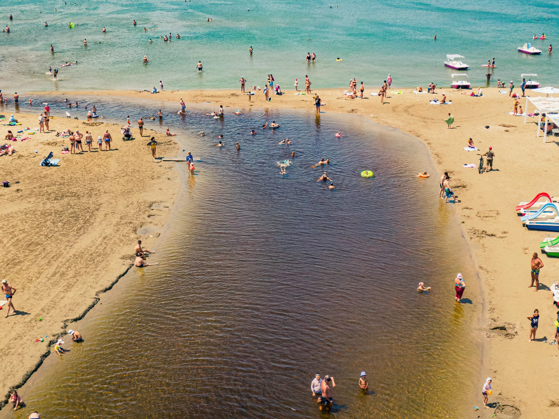 Как мы можем видеть летом 2022-го, река по-прежнему выглядит черной. Что, впрочем, не мешает курортникам купаться в ней. Равно как и в море, подернутом зеленым одеялом камки. Или, если вам угодно, кладофоры бродячей с легким добавлением ульвы.