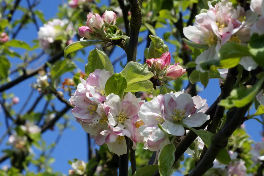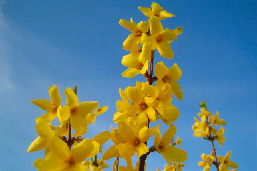 На рубеже февраля-марта цветут жимолость душистая, форзиция, свои прекрасные пушистые сережки выпустила ива козья (верба). После форзиции в середине апреля наступает пик цветения у многих плодовых деревьев — почти одновременно зацветают абрикосы, сливы, груши и вишни.