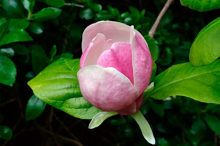 В середине апреля здесь будут цвести магнолии Суланжа и декоративные сортовые яблони. Магнолия цветет очень эффектно — огромными розово-сиреневыми цветками, а яблони — ярко-розовым и малиновым.