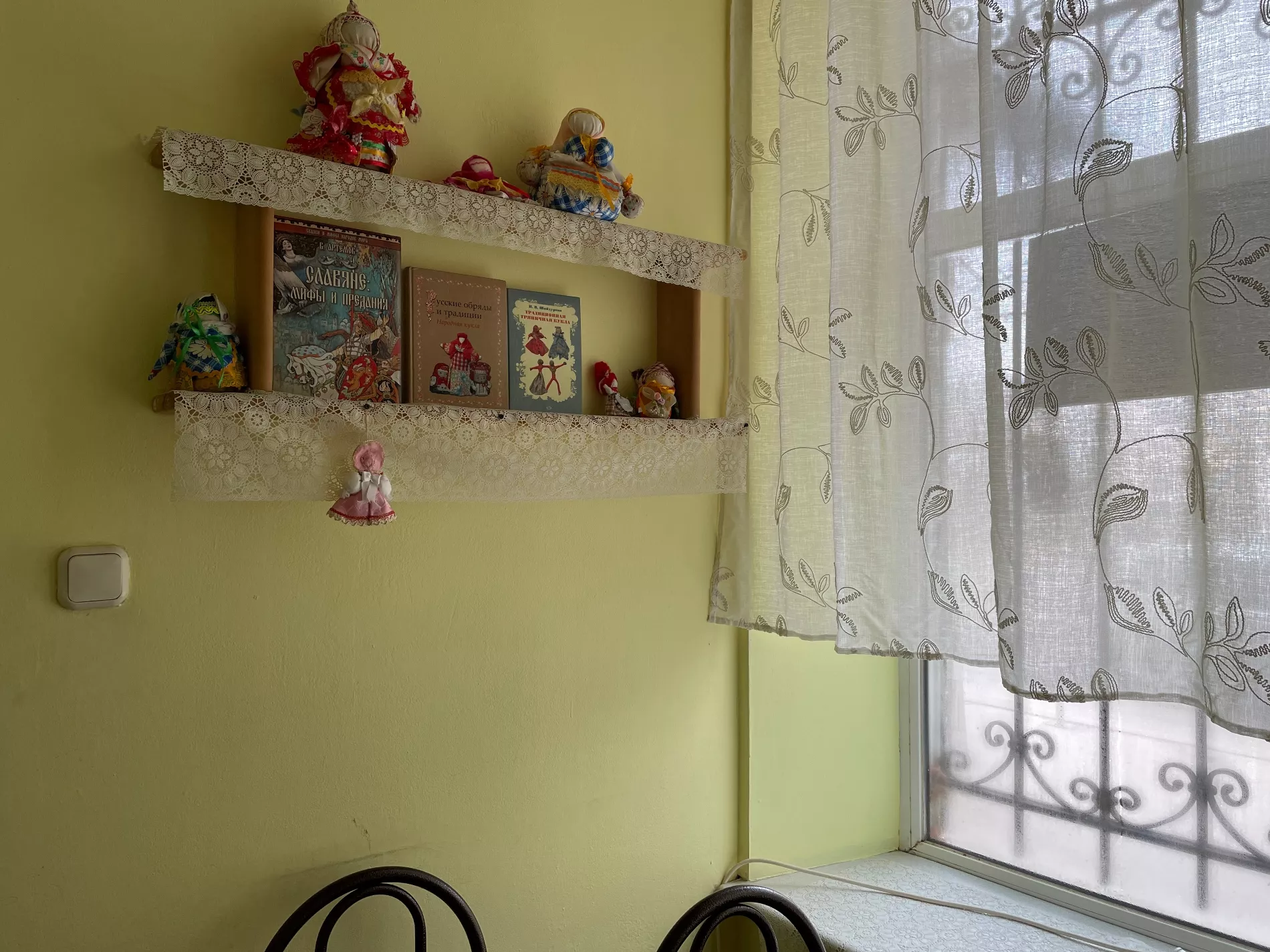 Здание, в котором работает блинная, возведено в 1890-1900 годах и соседствует с городским памятником архитектуры — усадьбой купца Рубежанского 1900-1908 годов постройки. Ремонт в блинной скромный, внутри всего три стола. На полке, украшенной тряпичными куклами, стоят книги о славянских мифах и традициях.