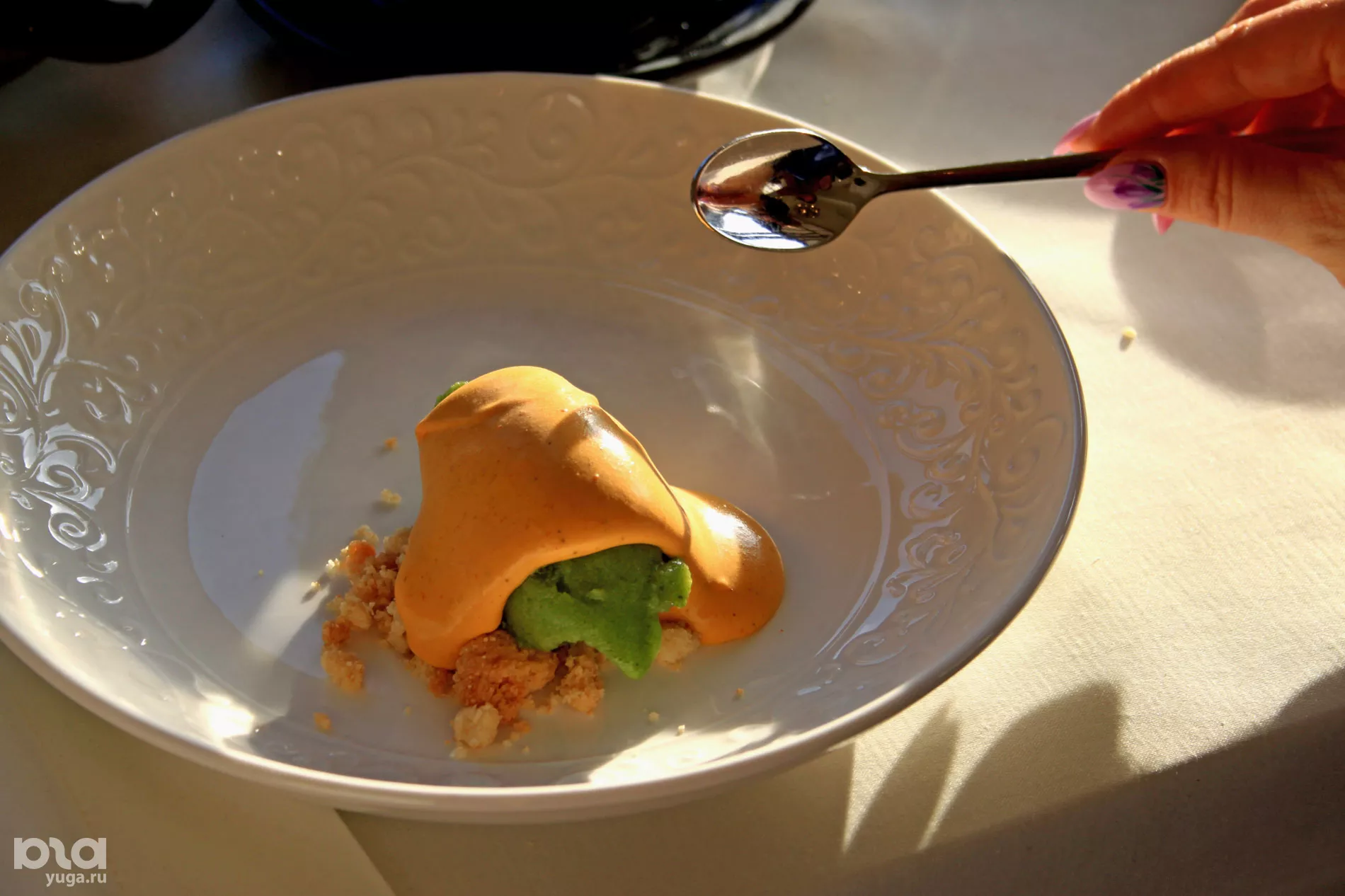 Облепиховый крем Патисьер, сорбет из щавеля © Фото Марины Солошко, Юга.ру