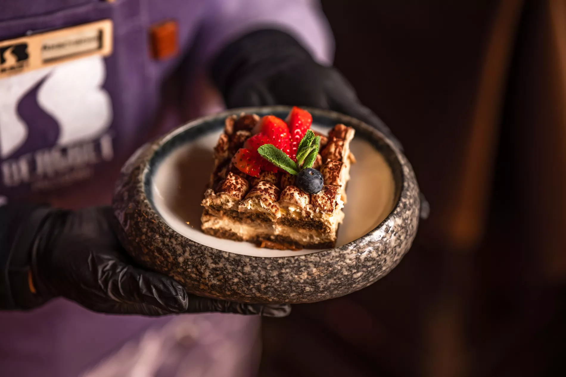 «Берлога» работает в формате фри-фло [с англ. — свободное движение] — по сути это такая вкусная столовая. Опыт участия международных фестивалей Tasteof подсказал Марку и Валентину идею, как внести изюминку в такой достаточно простой формат. Самые изысканные блюда от известных шеф-поваров на Tasteof подавали на обычных картонных тарелках, ведь главное — это вкус. Так шефы решились на целое меню на мангале в «Берлоге», где помимо привычных запеченных мяса и овощей есть шурпа и уха на костре, а еще — груша гриль с кунжутной соленой карамелью и мороженым, чизкейк на огне с соусом из брусники, маршмеллоу гриль с соленой карамелью и бананом.