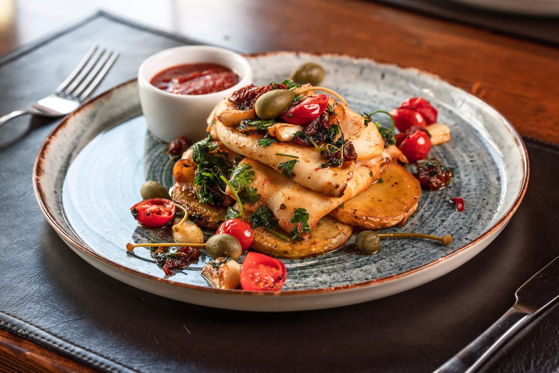 Одноименную рыбу тут готовят во всевозможных видах и текстурах. «Здесь мы подаем шесть видов текстур барабули: в виде паштета, в виде десерта — не просто, как везде в Сочи, жареная барабуля. Делаем и татаки, и севиче», — рассказывает Валентин Шин. А еще здесь можно заказать блюда, приготовленные на вулканических камнях — тихоокеанский командорский кальмар, семгу, султанку, тигровые креветки.