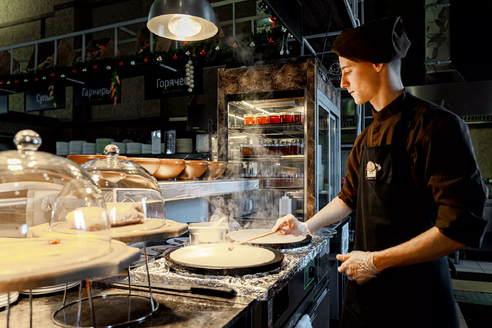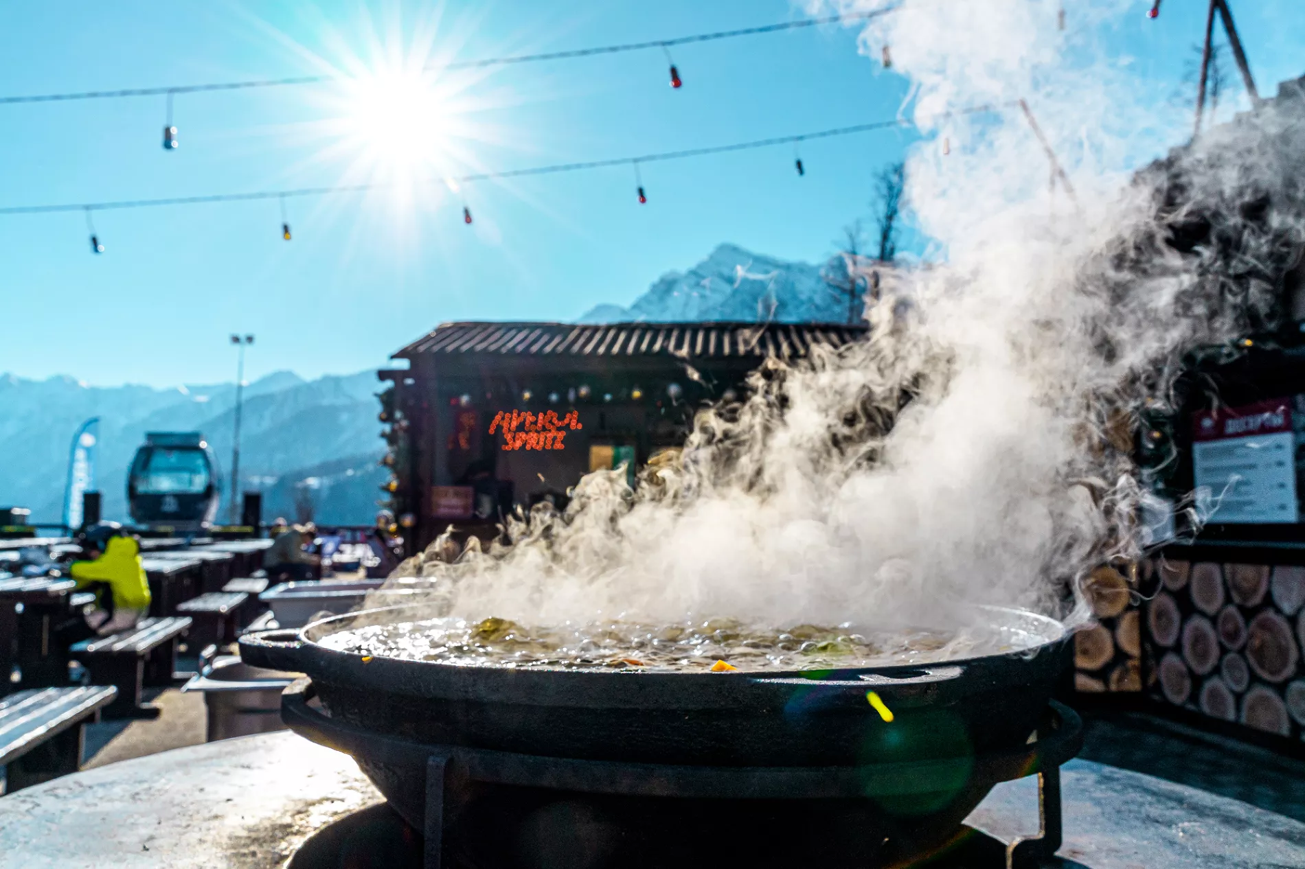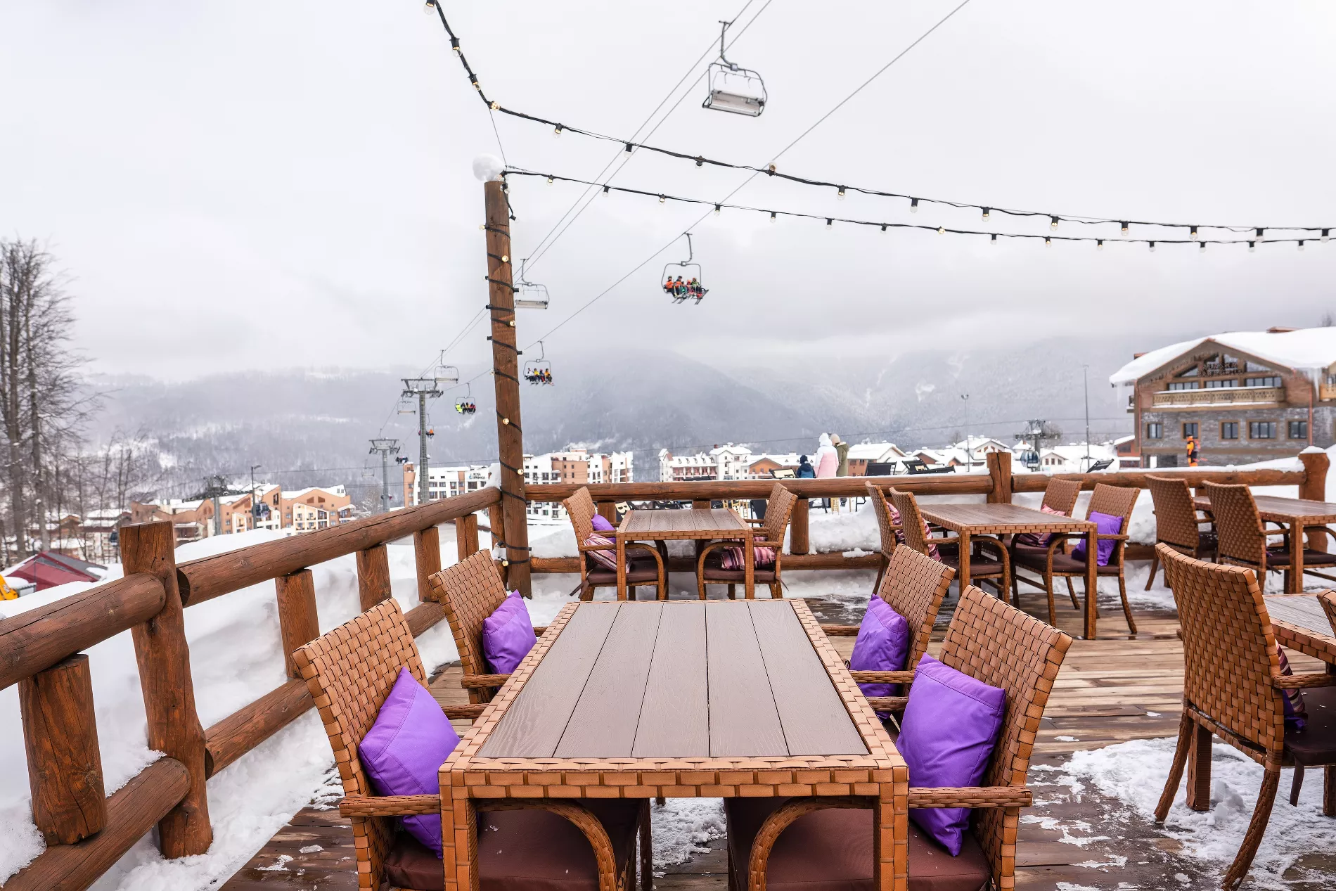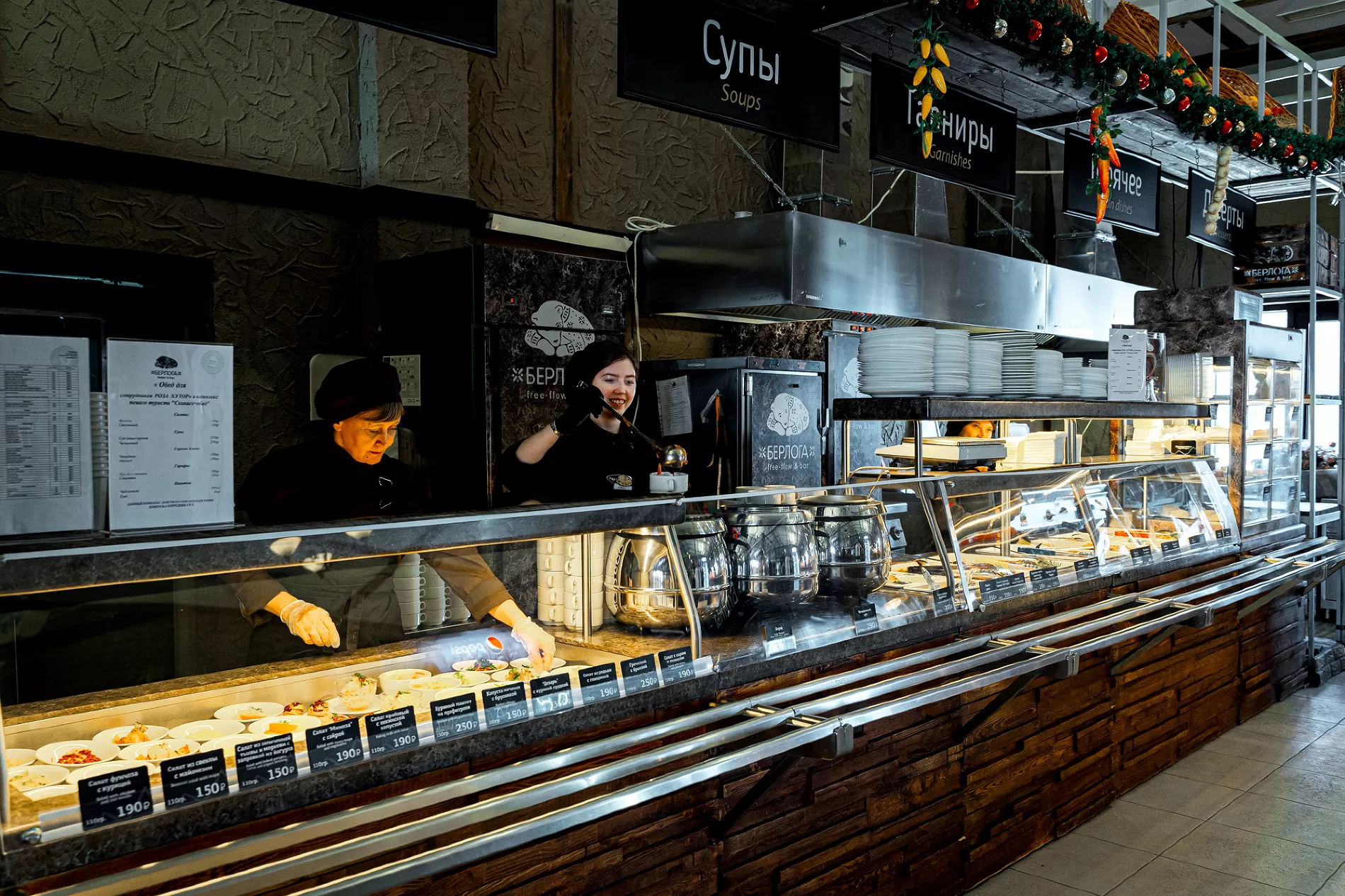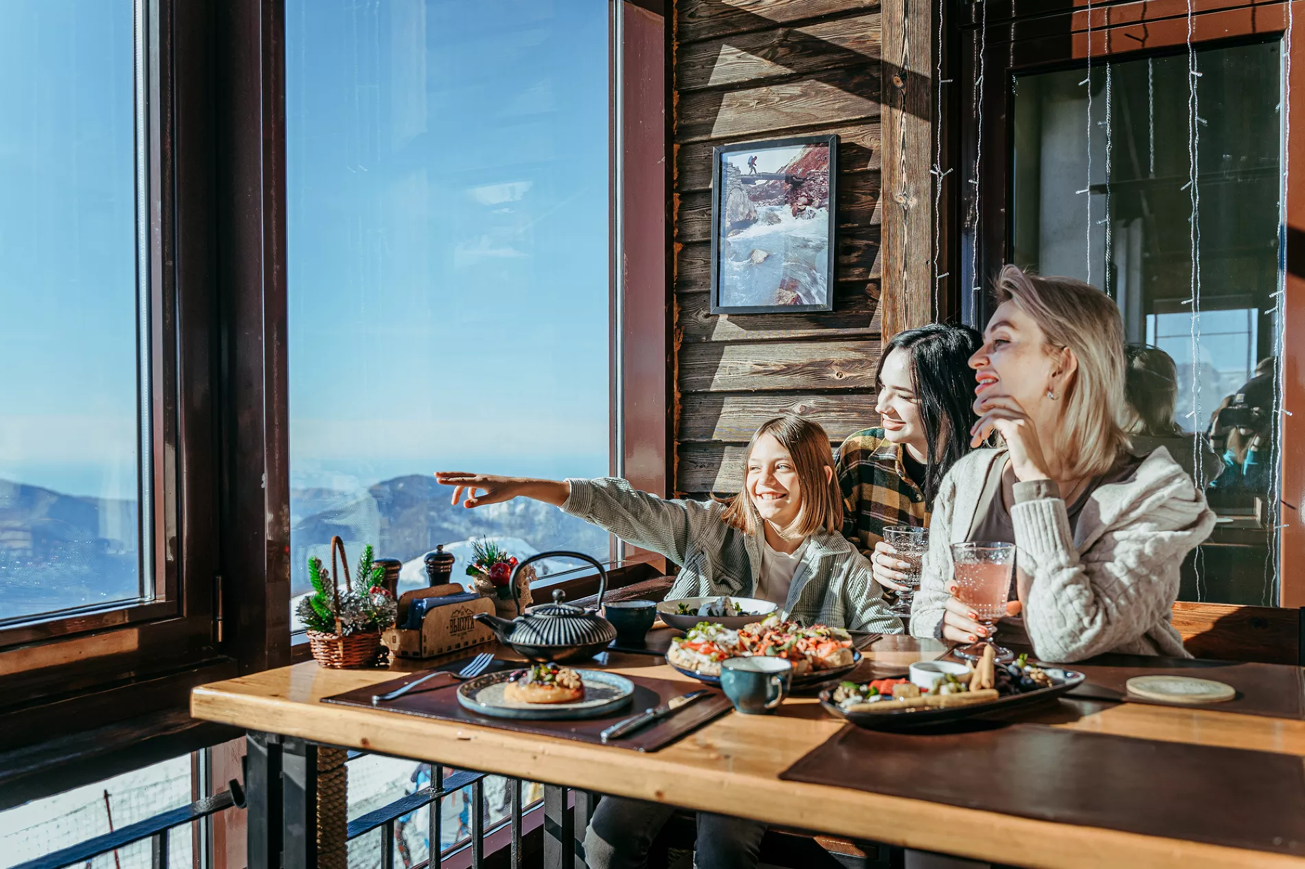 После активного катания здесь можно насладиться авторскими блюдами по рецептам самых популярных кухонь мира. В меню есть все, чтобы согреться и насладиться атмосферой: от сытной рульки и стейков до ассорти из живых морепродуктов и фуагра.