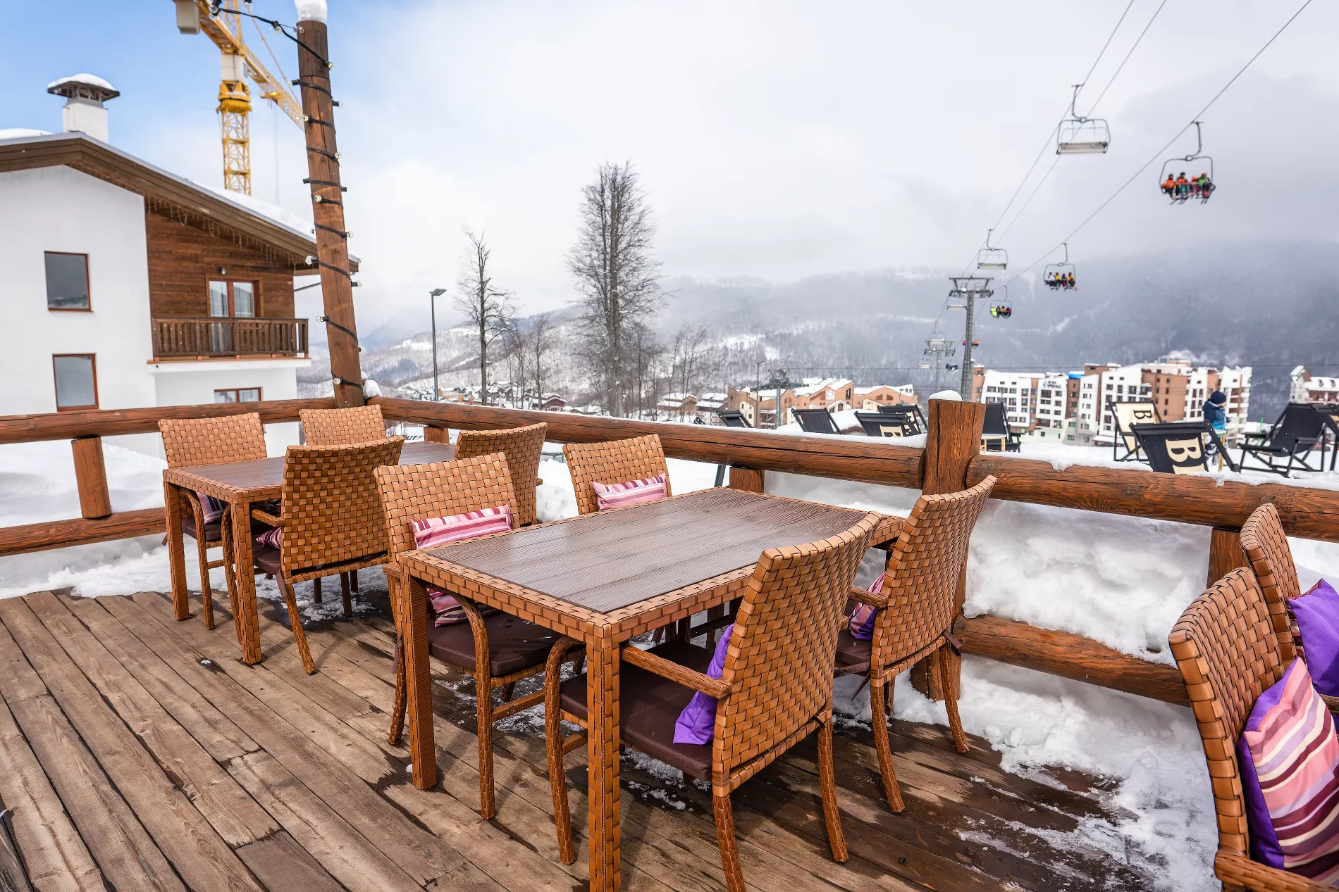 Главная особенность ресторана — терраса на высоте 1100 метров над уровнем моря. Но, как и полагается горнолыжному вельвету, доступен он только самым смелым: добраться в шале можно либо прямо с горнолыжной трассы, либо из Горной Олимпийской деревни на грузопассажирском «Соболе».