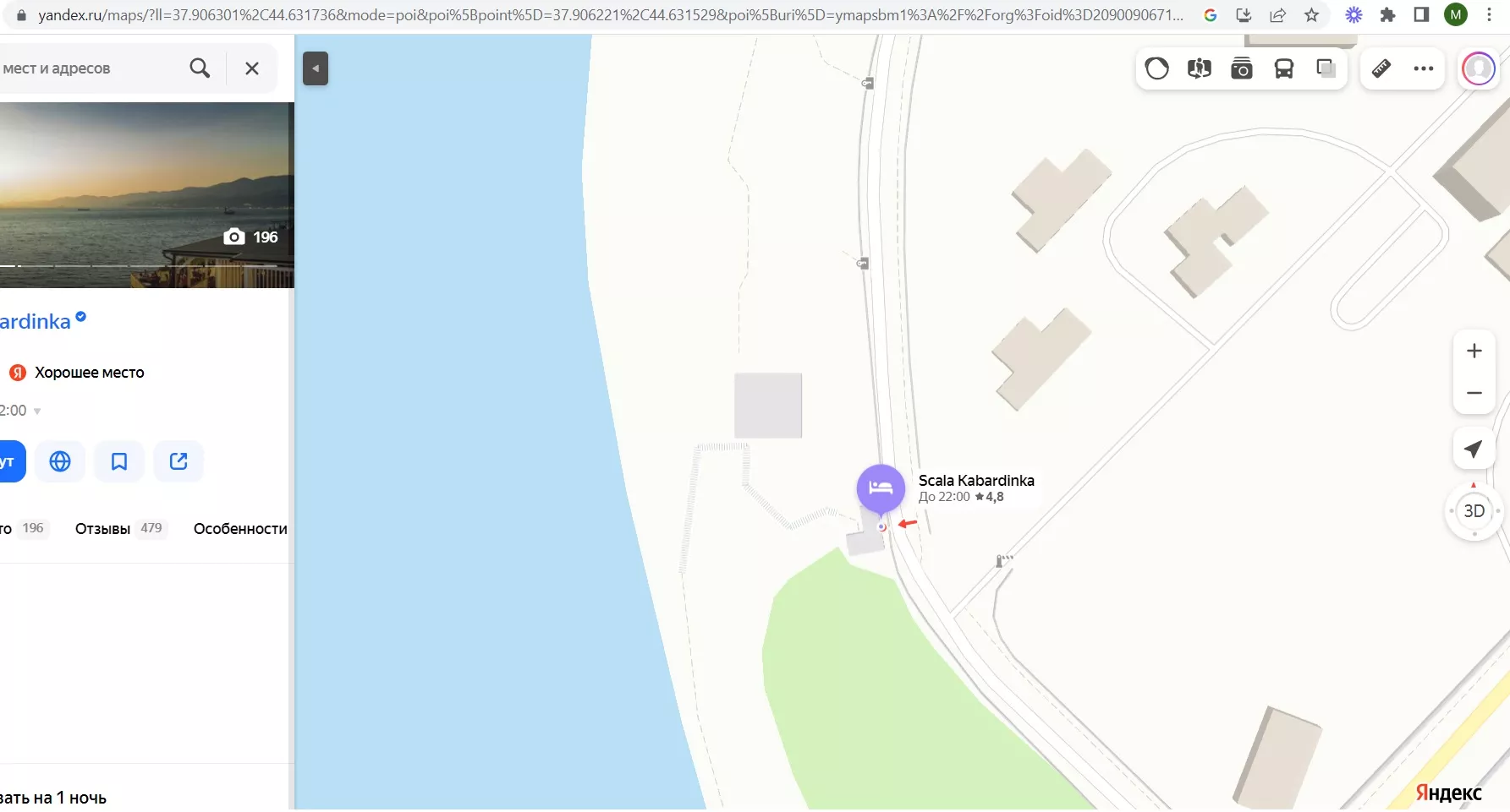 Две другие лестницы к диким пляжам расположены в Геленджике и Кабардинке. Найти первую просто — задать в «Яндекс.Картах» точку «Кемпинг «Сосновка». Коммерческая организация на территории больше не работает, но пройти к морю можно. Совсем недавно Юга.ру рассказывали, что лестница там частично разрушилась и ее уже восстанавливают.