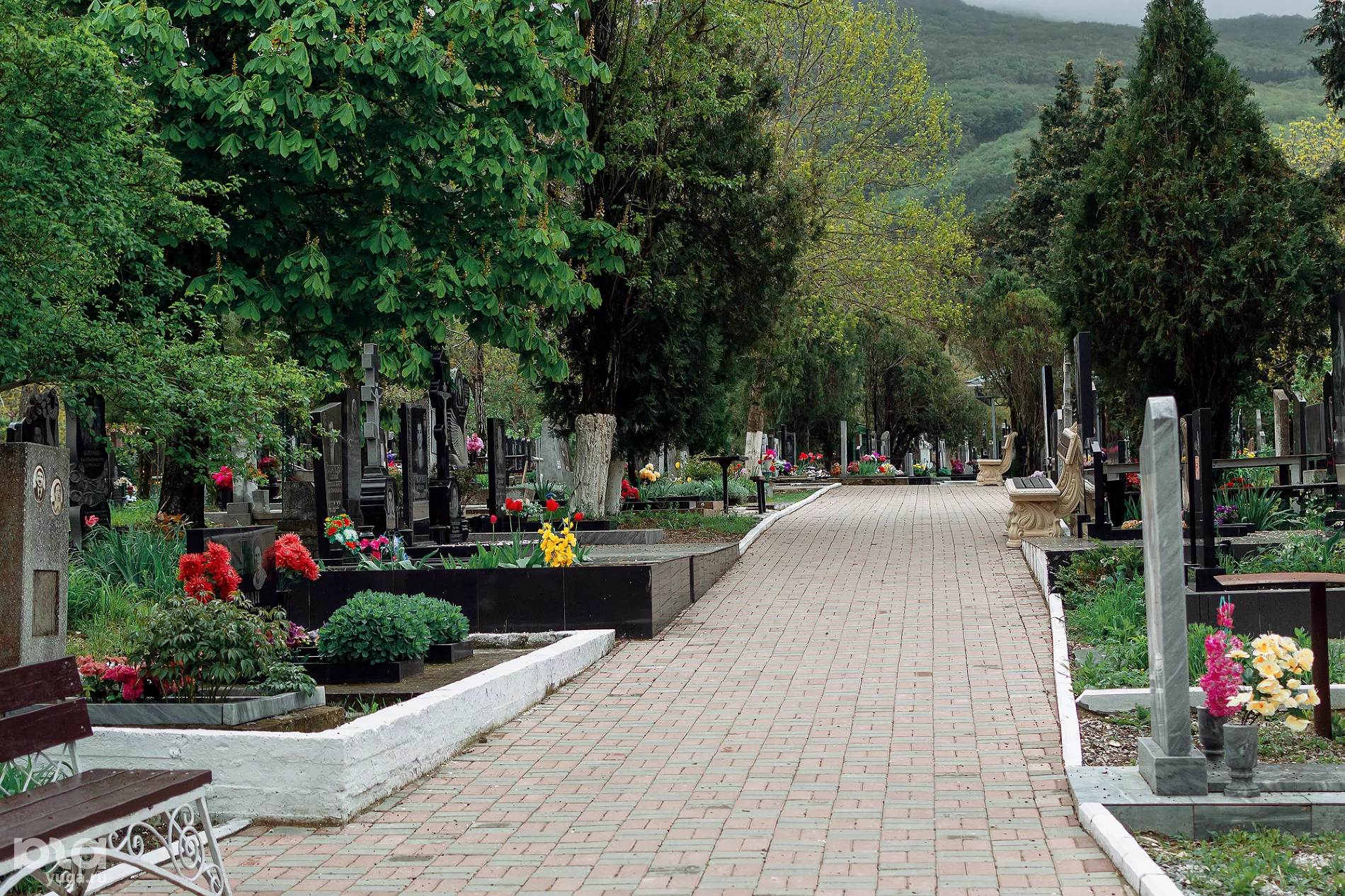 Похоже на поселковый парк, но с могилами. Много греческих. Одно из самых ухоженных кладбищ почти без заброшенных захоронений.