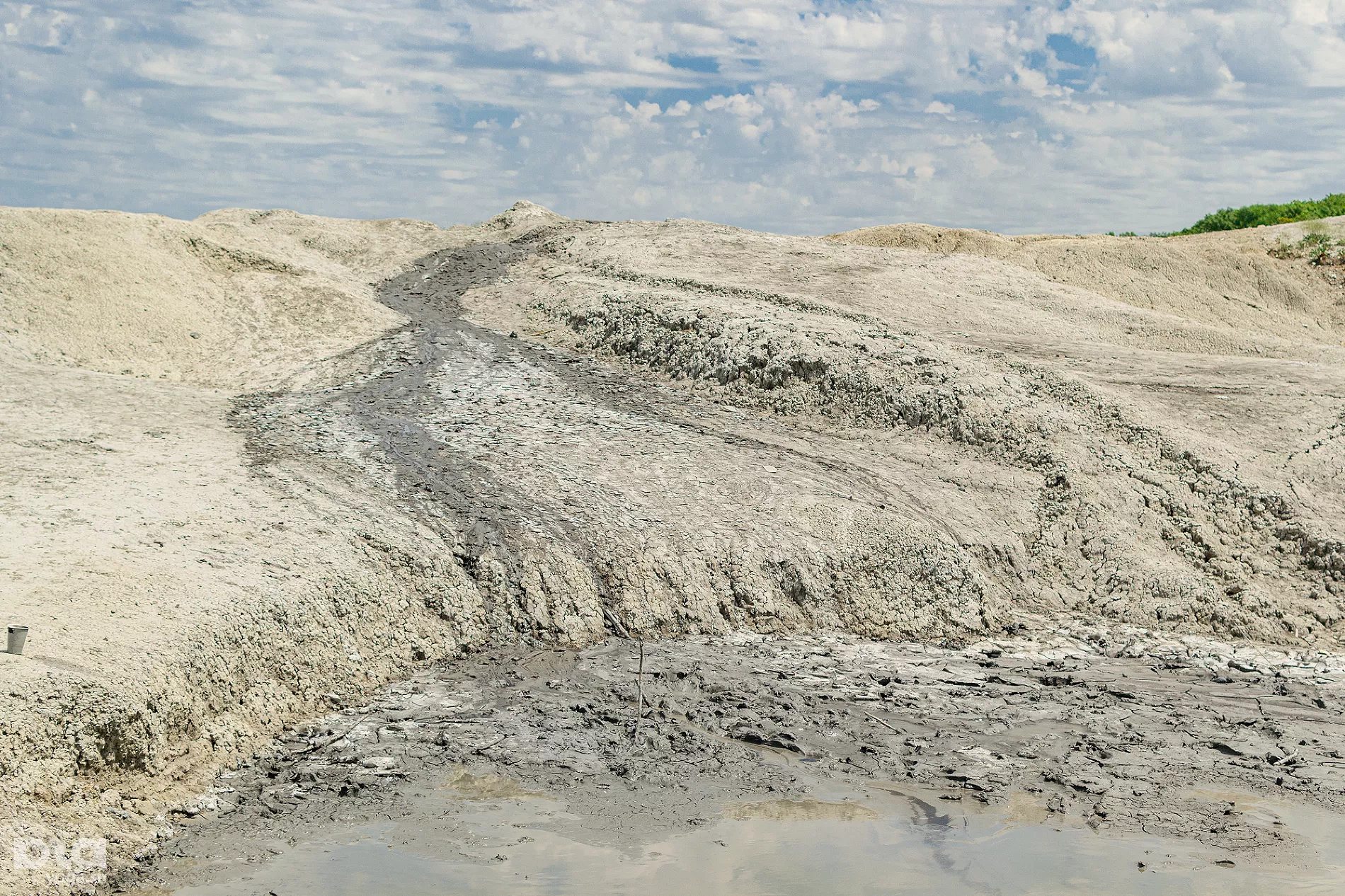 Радиус самого большого кратера — больше 100 метров, а внизу образовалось поросшее камышами озеро в виде полумесяца. Его воду можно использовать для отмывания грязи с тела. Грязь, вяло вытекая из кратера, образует плотную растрескавшуюся корку с наслоениями по пути стока.