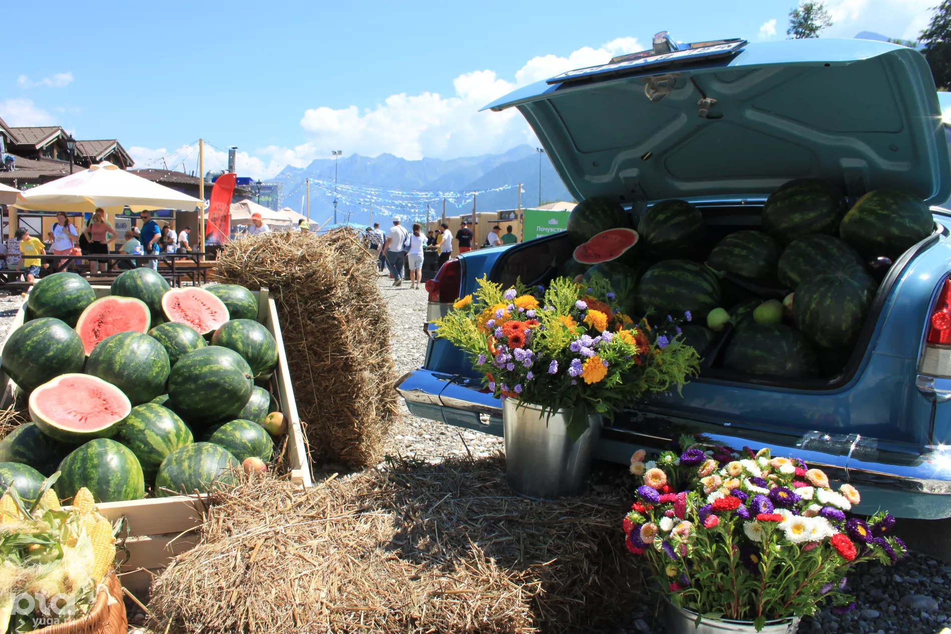 В корнере ресторана «Шале» с открытия ярмарки продали уже 15 хот-догов с колбасками и капустой по-грузински и 4 бургера с брискетом (говяжьей грудинкой). В фестивальном сете сегодня — сыр собственного приготовления с вялеными овощами и соусом наршараб, тартар из говяжьей вырезки на креме из сезонных лисичек с выдержанной утиной грудкой, горячее с краснополянской форелью и десерт с тархуном и персиком.