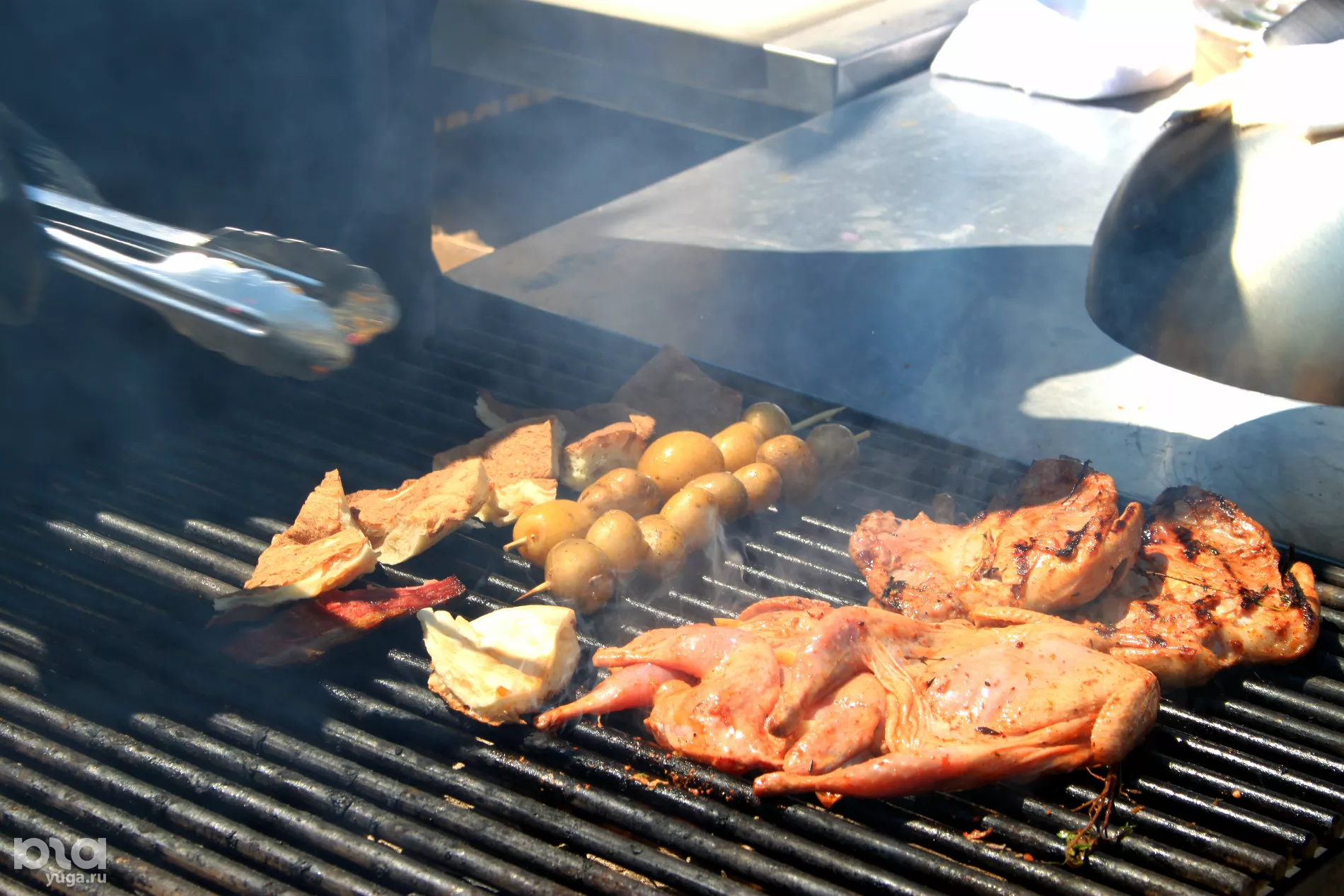 Повара гастробара «Цаца» сделали ставку на японский гриль. На нем жарят шашлычки из говядины, рапаны, кальмары и баклажаны. «Мы мешаем Кавказ с Азией, берем локальные продукты и делаем их в азиатском стиле, — объясняет шеф-повар Станислав Власов. — Самые популярные блюда у гостей в ресторане — это наши рамены, а здесь — шашлычки из говядины и холодный суп кукси с перепелиными яйцами, лапшой собственного приготовления, огурцами, редисом и говядиной». Чтобы приготовить дома вкусный говяжий шашлык, шеф советует выбирать вырезку.