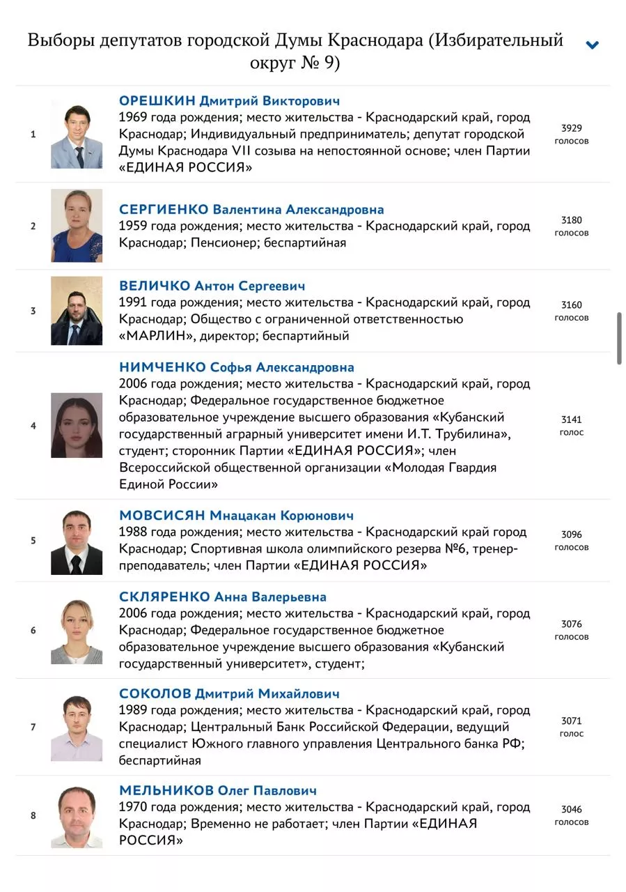 В понедельник, 26 мая, на официальном сайте «Единой России» опубликовали результаты предварительного голосования по определению кандидатов партии на предстоящие выборы в гордуму Краснодара.