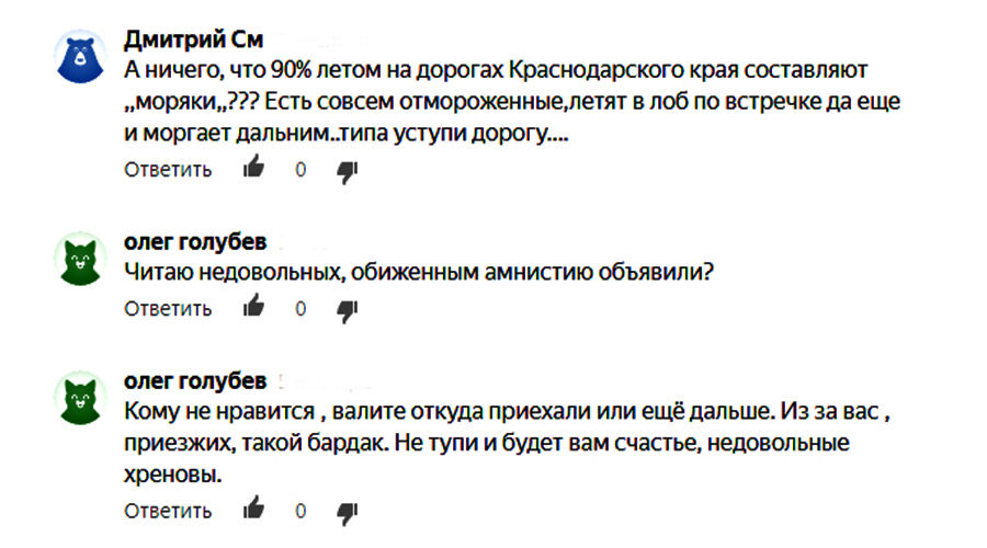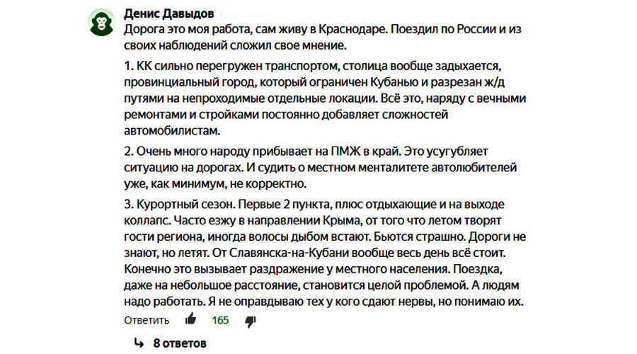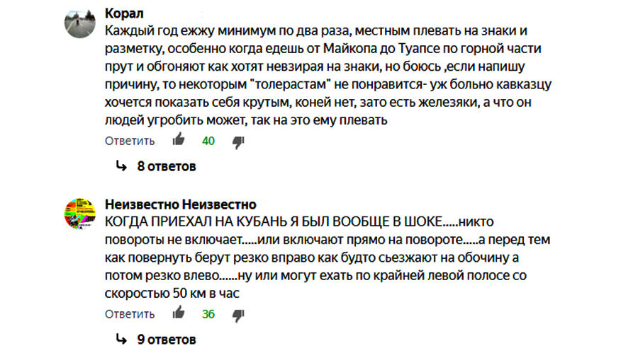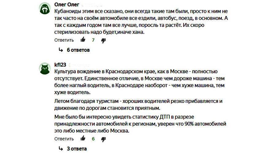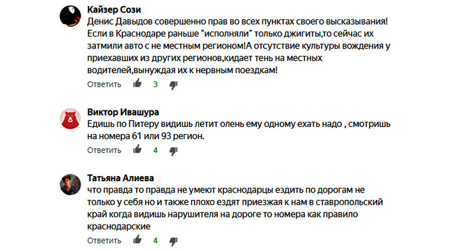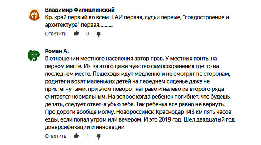 В целом каждый водитель, заезжая в чужой регион, почти сразу произносит либо «у нас примерно так же», либо «какой кошмар, как они тут ездят». Так что же думают россияне о кубанских водителях? Ниже ряд комментариев читателей на канале «Кубань на колесах».