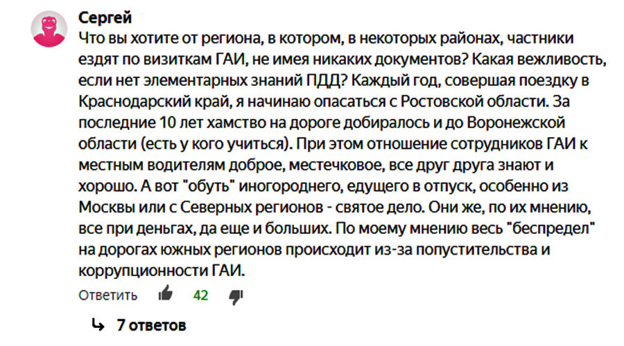 Журналист и редактор раздела Авто Юга.ру Евгений Мельченко почитал комментарии посетителей сервиса «Яндекс.Дзен» и узнал, что думают россияне о манере вождения в Краснодарском крае.