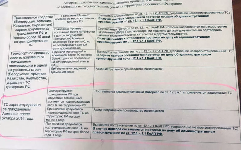 В начале 2020 года вступили в силу изменения к Договору о присоединении Армении к ЕАЭС. Но в самом договоре и ранее было указано, что распоряжаться автомобилем, прошедшим регистрацию в Армении, имеет право только гражданин Армении или «лицо, постоянно проживающее на территории Армении». Вот тут и есть зацепка для наших правоохранителей. Та самая ст. 12.3 ч.1 из памятки инспектору ГИБДД: «Управление транспортным средством водителем, не имеющим при себе регистрационных документов на транспортное средство, а в установленных случаях документов, предусмотренных таможенным законодательством Таможенного союза, с отметками таможенных органов, подтверждающими временный ввоз транспортного средства».