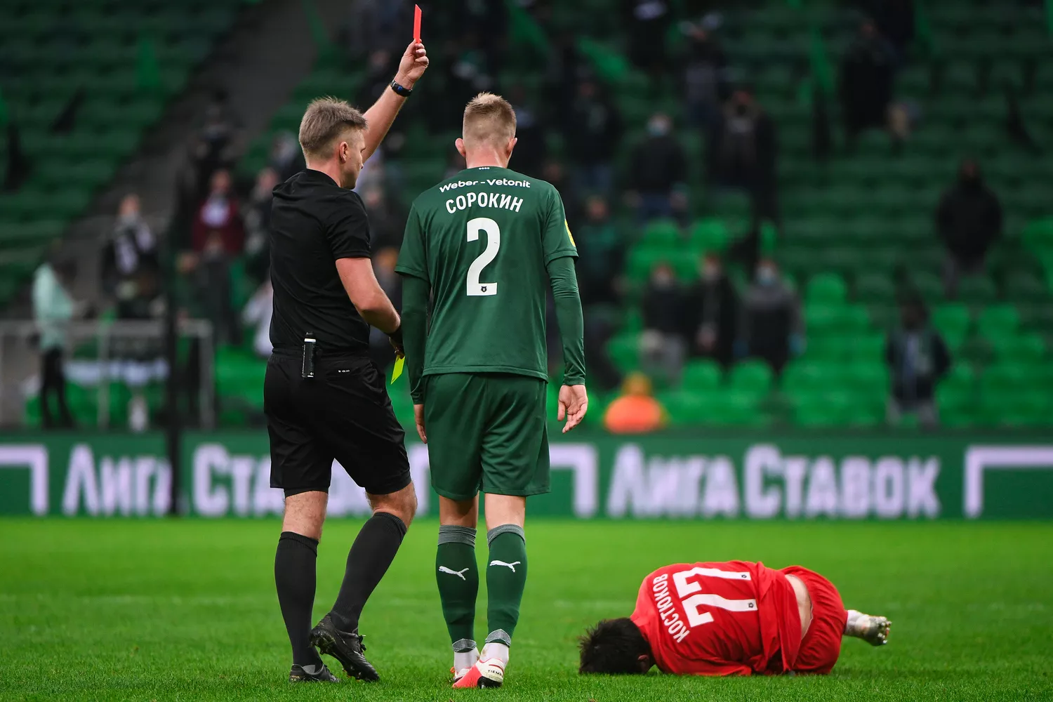 И да, я не могу не написать про Лапочкина. О его судорожной манере судейства говорил уже не раз. Чуть кто падает при контакте или стыке, Лапочкин так быстро хватается за карман с карточками, будто от этого его жизнь зависит. С моей точки зрения, в эпизодах со вторыми «горчичниками» Сорокину и Арояну вполне можно было обойтись обычной фиксацией фола. Хотя в случае с Арояном наверняка сработала психология и подсознательное желание уравнять составы после необязательного удаления в другую сторону.