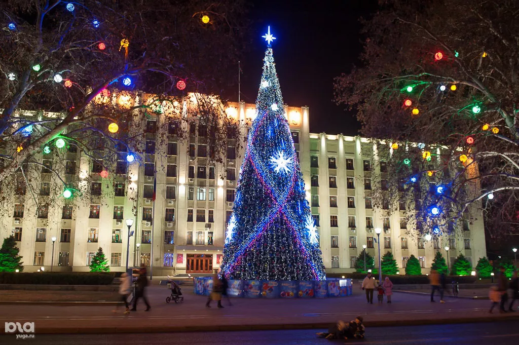 Ёлка перед зданием администрации Краснодарского края (фоторепортаж)