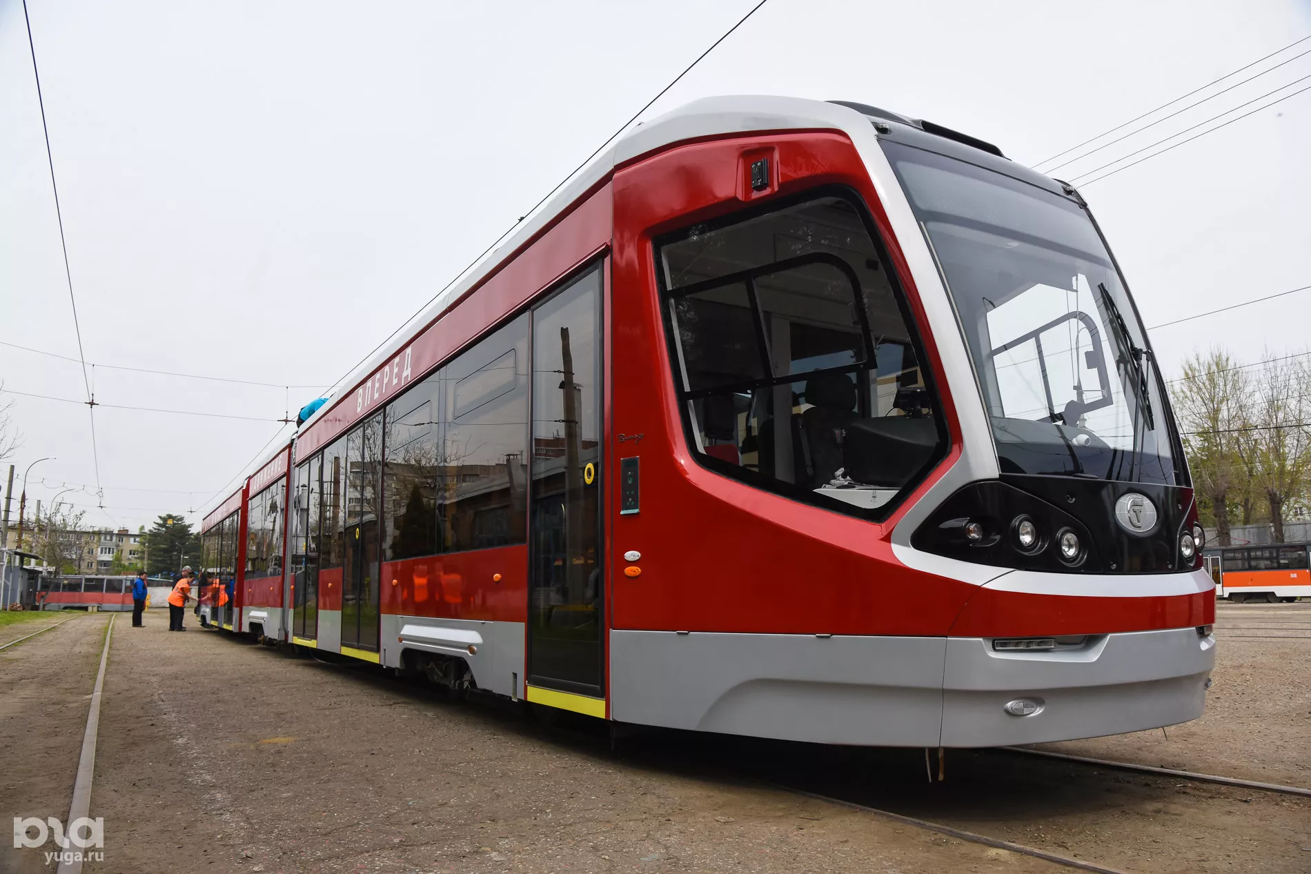 В Краснодаре смонтировали новый трехсекционный трамвай (фоторепортаж)