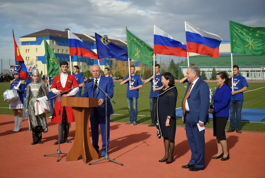 На территории Майкопского государственного гуманитарно-технического колледжа Адыгейского государственного университета 10 ноября состоялось торжественное открытие нового студенческого стадиона АГУ