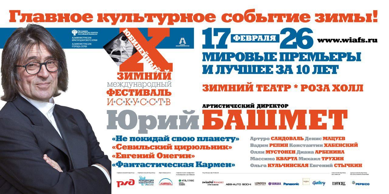 Сочи примет X Зимний международный фестиваль искусств под руководством Юрия Башмета
