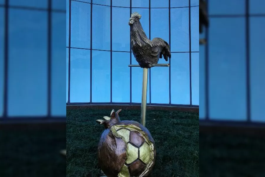 В Сочи появилась скульптура «Петух, охраняющий футбольный мяч»