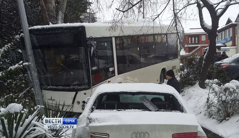Гололед стал причиной массового ДТП с участием автобуса в Сочи