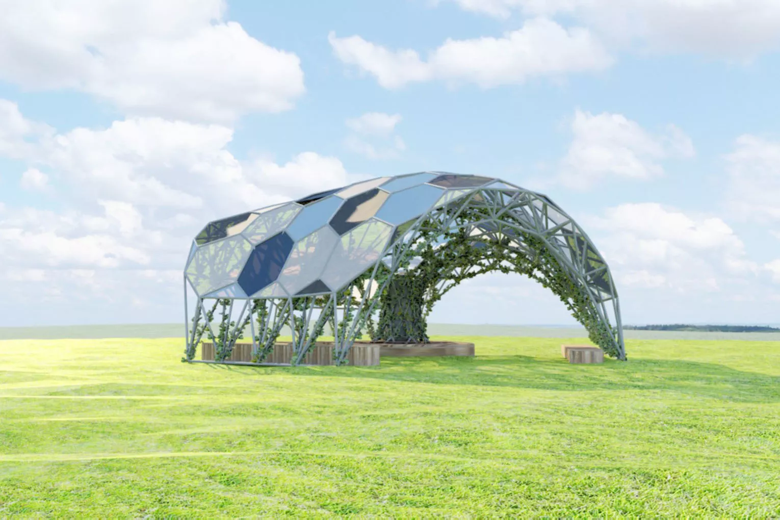 «Купол, он же крыша, содержит в себе систему сбора и удержания дождя и автоматизированного полива. Диаметр остановки составит 5 метров, стоимость одной конструкции составит 500 тыс. рублей», — сообщает 161.ru со ссылкой на руководителя проекта Сергея Савченко.