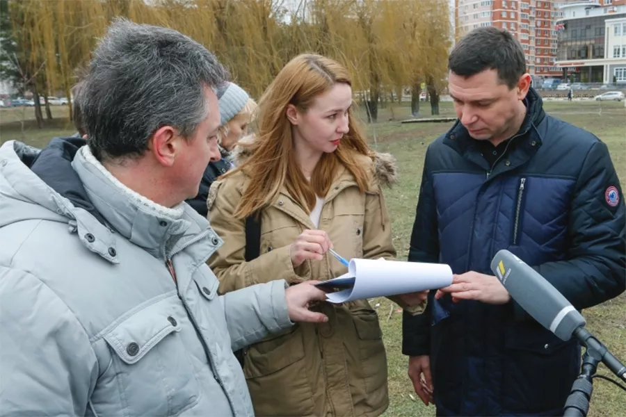 Мэр Краснодара Евгений Первышов в ходе рабочего объезда пообщался с инициаторами создания Народного парка вдоль одного из водоемов в Комсомольском микрорайоне