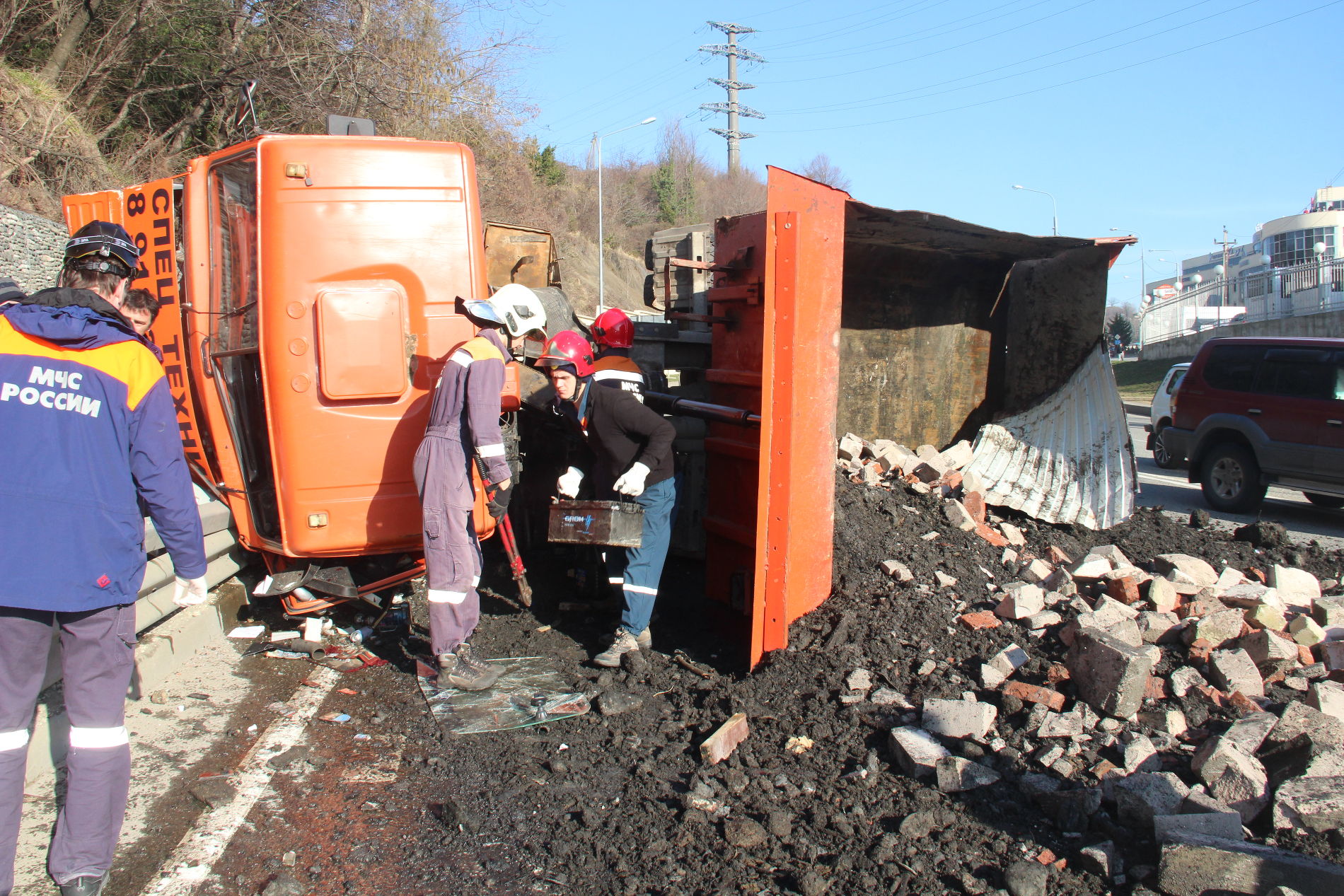 В Сочи 9 февраля на подъезде к ТЭЦ перевернулся грузовой автомобиль