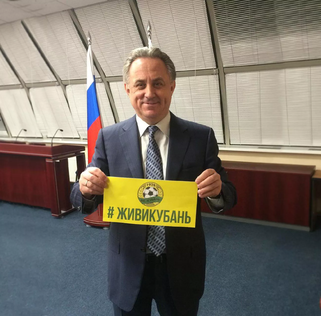 Вице-премьер правительства РФ и президент Российского футбольного союза Виталий Мутко присоединился к акции #ЖивиКубань, направленной на привлечение внимания к финансовым проблемам краснодарского клуба