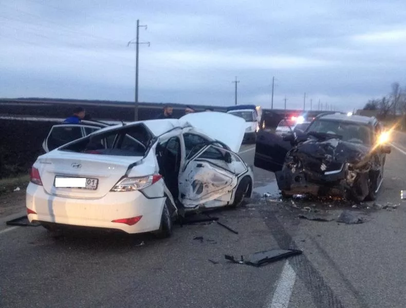 «По предварительным данным, 24-летняя жительница Майкопа, управляя автомобилем Hyundai Solaris, выехала на полосу встречного движения и допустила столкновение с двигавшимся во встречном направлении внедорожником», — сообщили в пресс-службе МВД по РА.