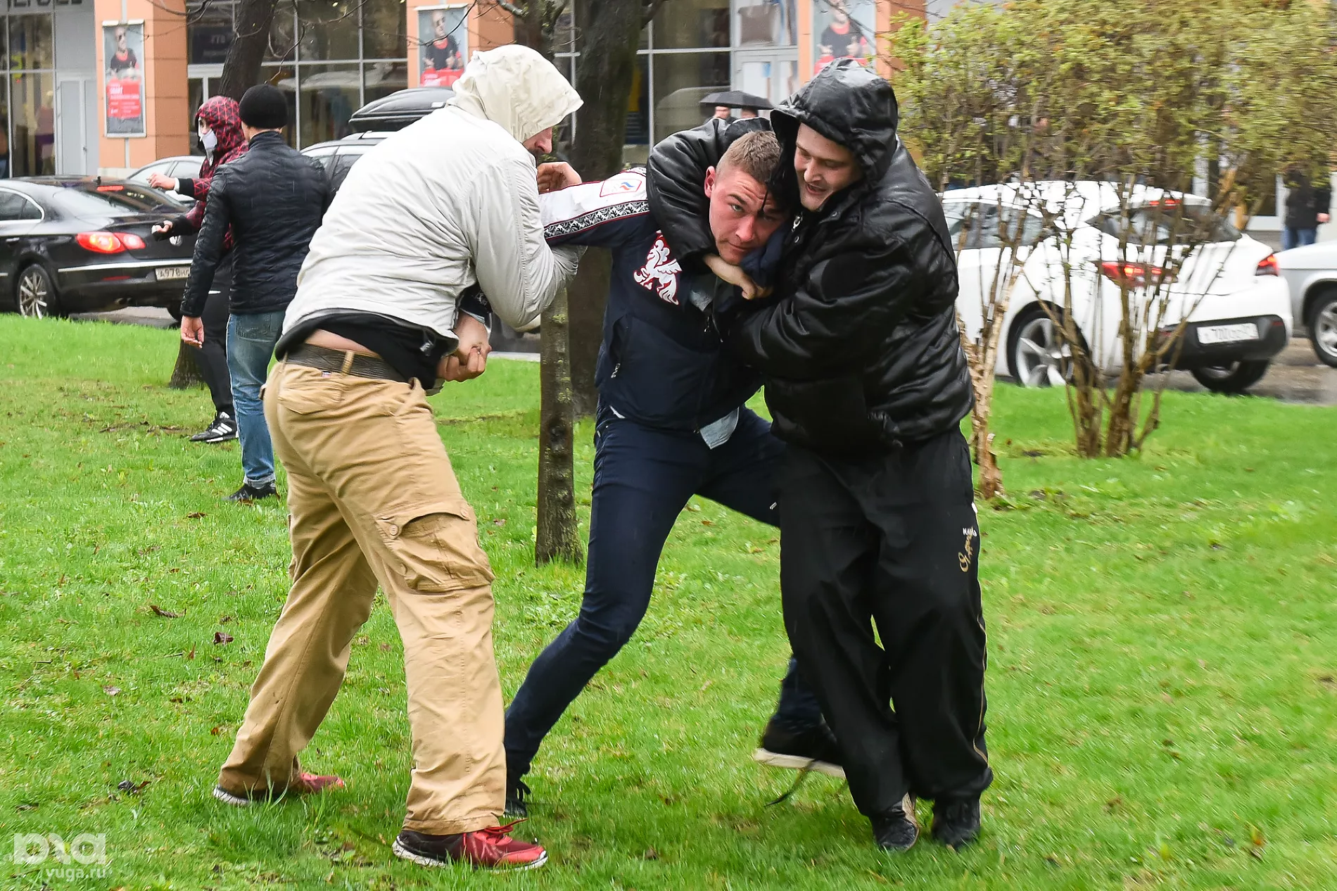 Один из задержанных сообщил порталу Юга.ру, что на фото увидел человека в гражданской форме, который схватил его и отвел в автозак.