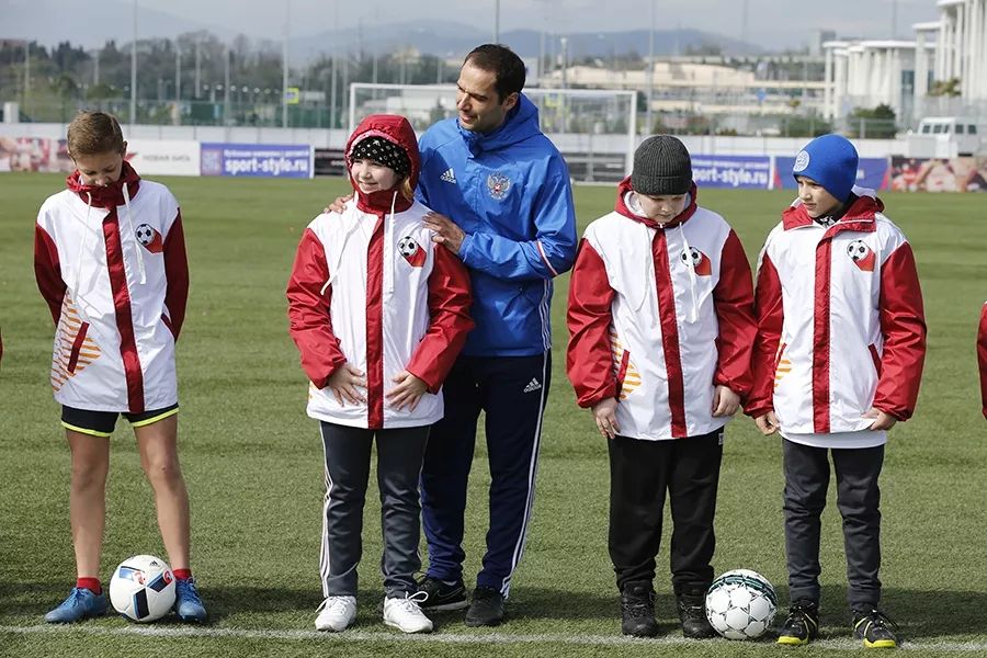 Бывший капитан сборной России по футболу Роман Широков и экс-игрок сочинской «Жемчужины» Гоча Гогричиани в Олимпийском парке провели мастер-класс для детей