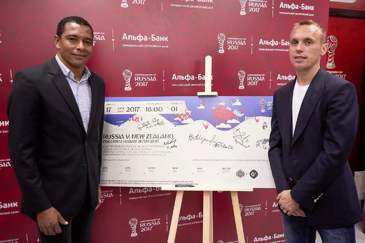 Официальная церемония открытия главных билетных центров ФИФА состоялась в Москве. В ней приняли участие вице-премьер Правительства РФ Виталий Мутко, генеральный директор оргкомитета «Россия-2018» Алексей Сорокин, легенда ФИФА Жилберто Силва, полузащитник сборной России Денис Глушаков, коммерческий директор ФИФА Филипп ле Флок, глава билетного департамента ФИФА Фальк Эллер и председатель совета директоров «Альфа-Банка» Петр Авен. Во время церемонии впервые представили дизайн билетов на матчи Кубка конфедераций.