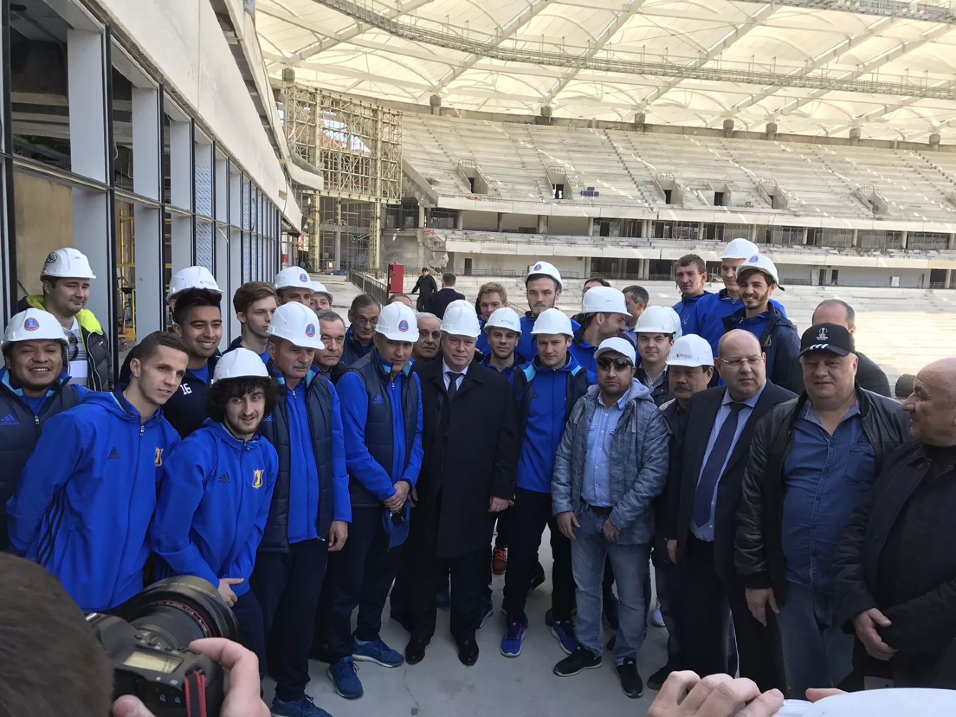 Игроки и тренеры футбольного клуба «Ростов» 26 апреля побывали на стройке стадиона, на котором пройдут матчи чемпионата мира 2018 в Ростове-на-Дону