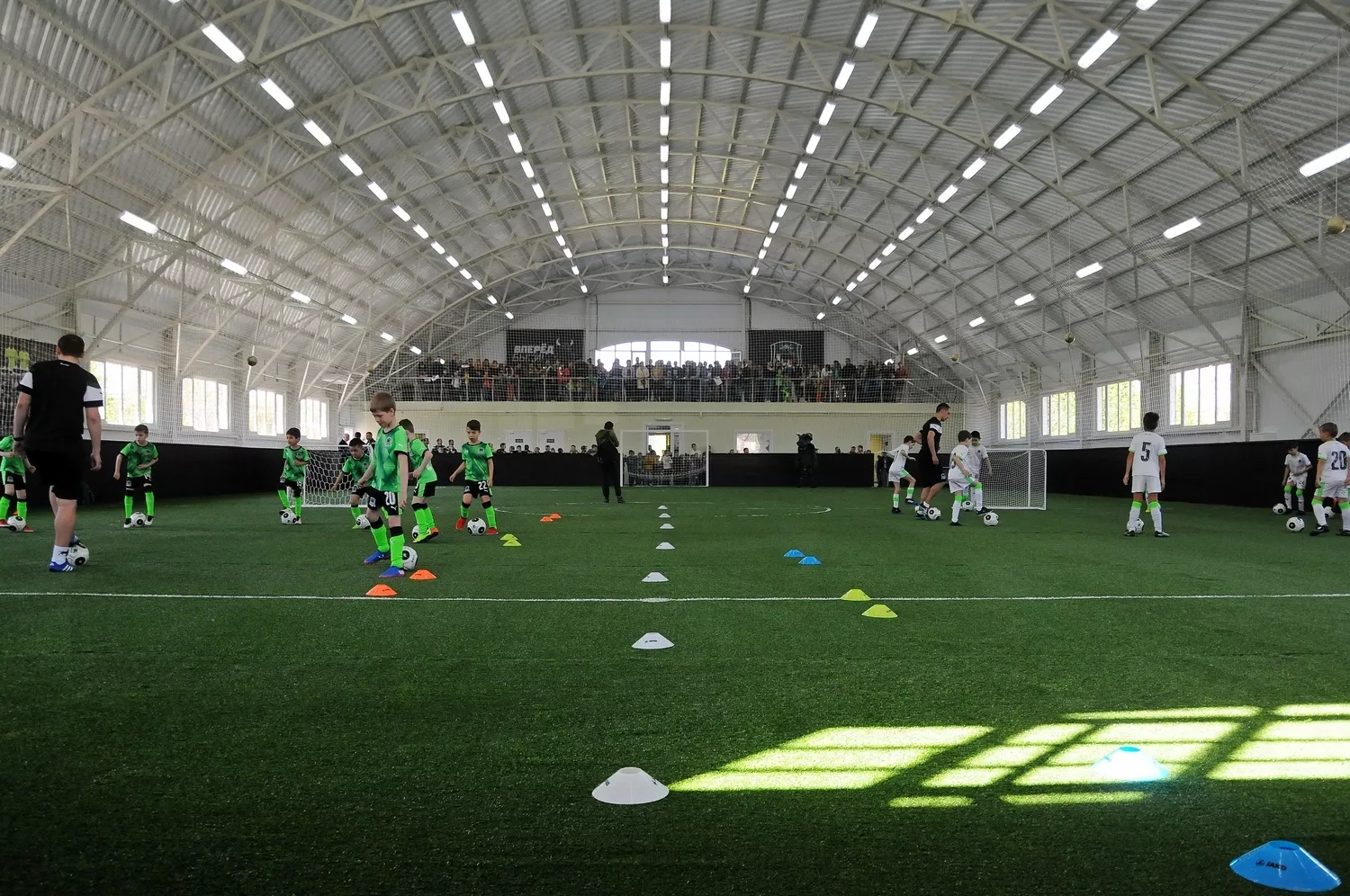 В нем смогут в любое время года заниматься дети от 6 до 11 лет. Спортивный комплекс стал 10-м манежем в Краснодаре и 19-м в крае. Его площадь составляет более 1 тыс. кв. м. На территории комплекса расположено игровое поле 22 на 38 м с искусственным покрытием, две раздевалки с душевыми комнатами, тренерская и подсобные помещения. На втором этаже оборудована площадка, где родители смогут наблюдать за тренировочным процессом.