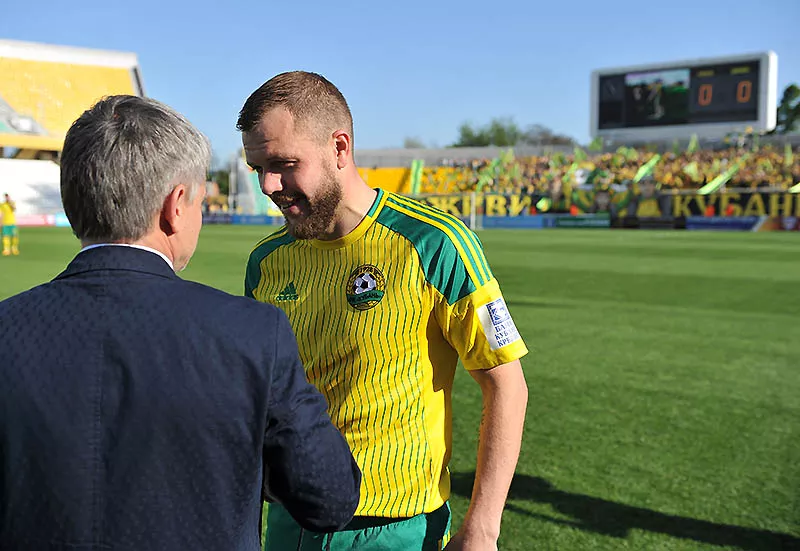 ФНЛ вручила приз хавбеку ФК «Кубань» Алексею Гаю, который помог потерявшему сознание форварду саранской «Мордовии» Александру Алхазову