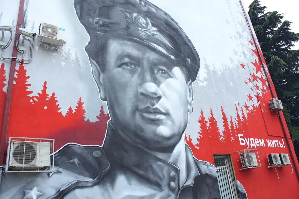 «Героя очередной работы художникам помогли выбрать подписчики в социальных сетях. Но для его исполнения им хотелось задействовать очень масштабное полотно. В результате близость праздника 9 мая определила сроки сдачи работы. Все необходимые материалы, подъемники обеспечила администрация», — сообщает пресс-служба администрации Сочи.
