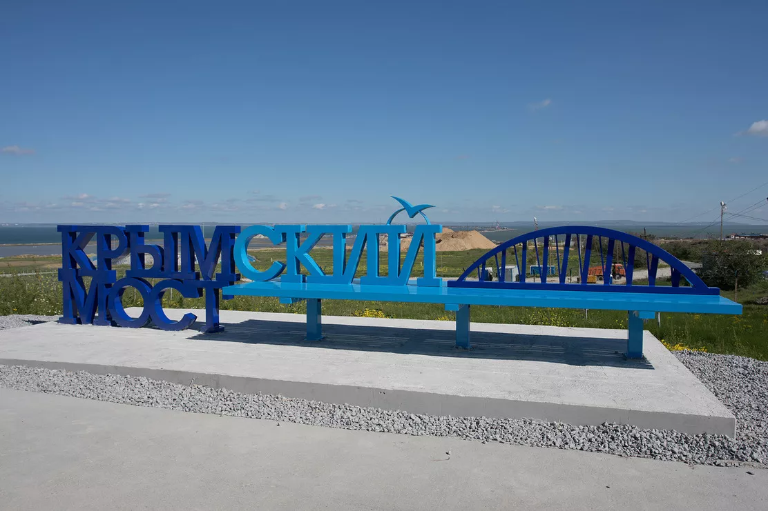 Скамейку с официальным логотипом Крымского моста установили на смотровой площадке в Тамани